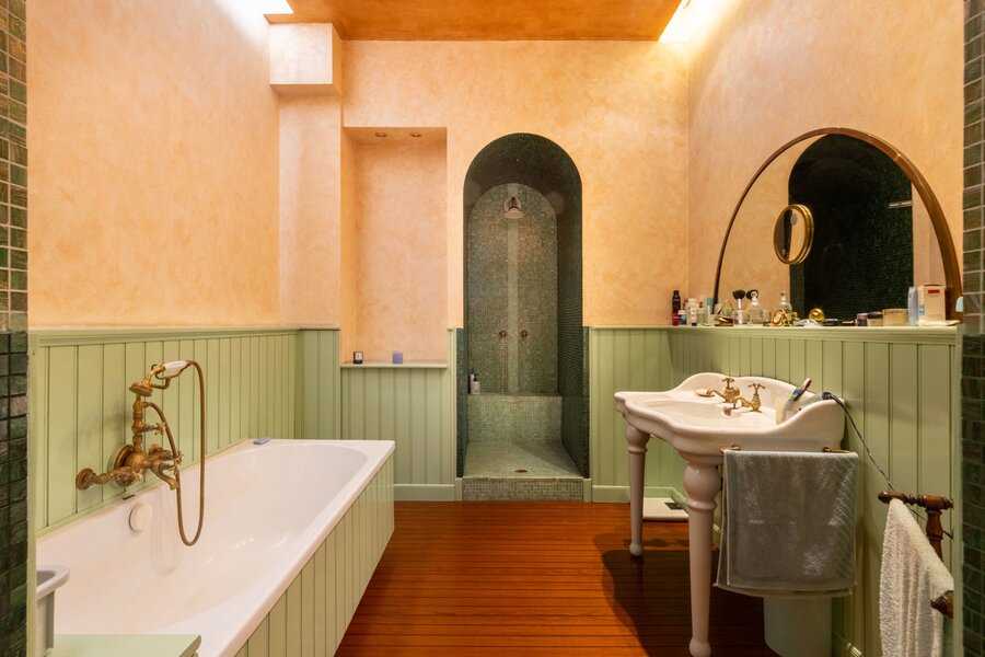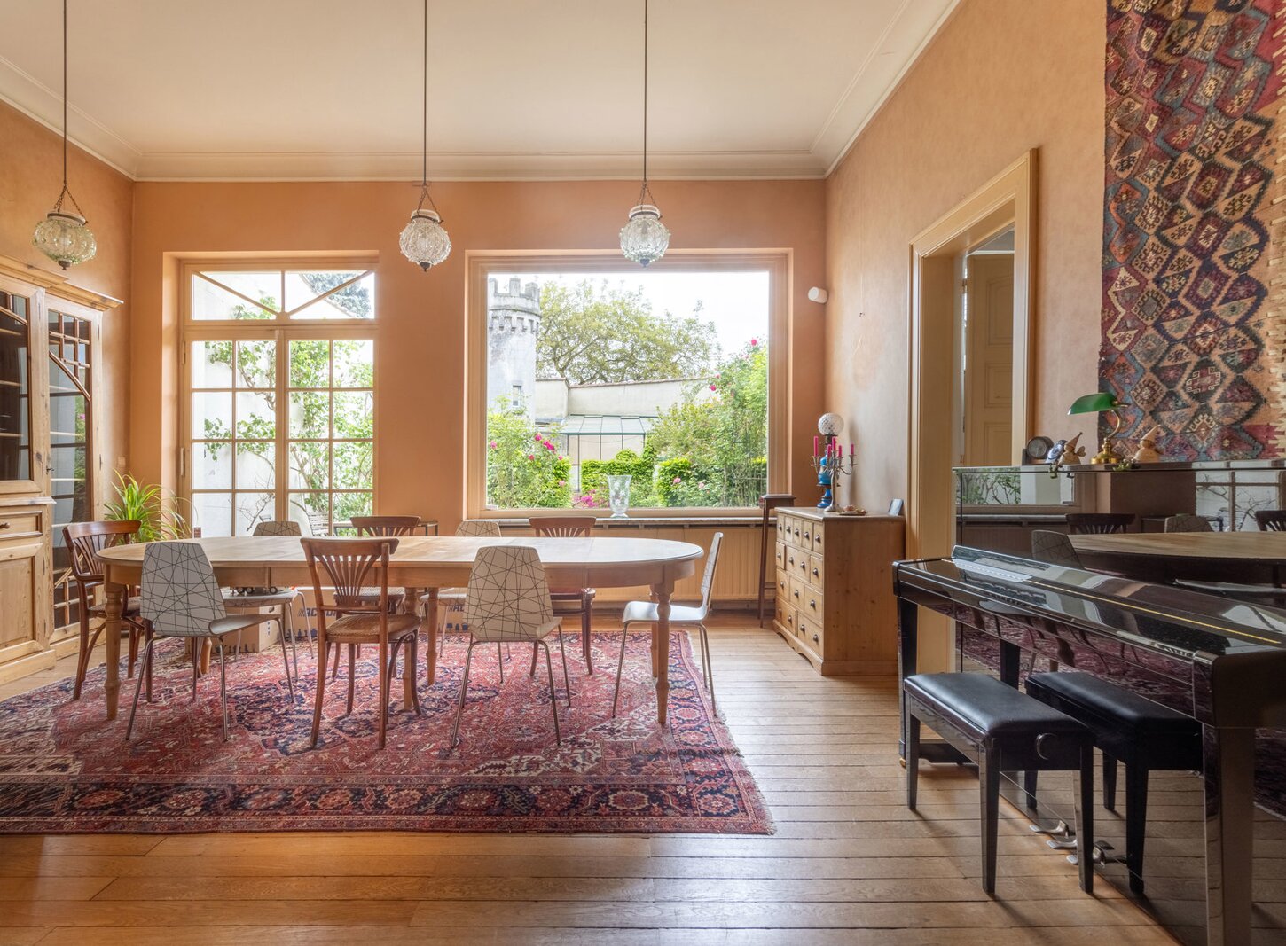La maison de maître offre de généreux volumes répartis sur plusieurs niveaux : de vastes réceptions baignées de lumière, de nombreuses chambres, plusieurs salles de bains, ainsi qu'une possibilité d'aménagement professionnel sur minimum 30 % de la superficie. Les combles et le grenier sont aménageables, et de nombreuses caves ainsi que des espaces polyvalents en sous-sol offrent encore de multiples opportunités.