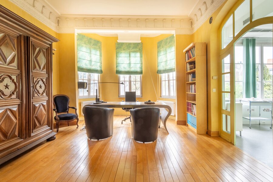 À deux pas du Parc Astrid, dans un quartier prisé d'Anderlecht, s'élève cette remarquable maison de maître érigée en 1916, développant une superficie totale de ± 650 m² sur un terrain de ± 405 m². Véritable incarnation de l'élégance intemporelle, elle témoigne d'un art de vivre raffiné et d'une majesté d'époque rare.