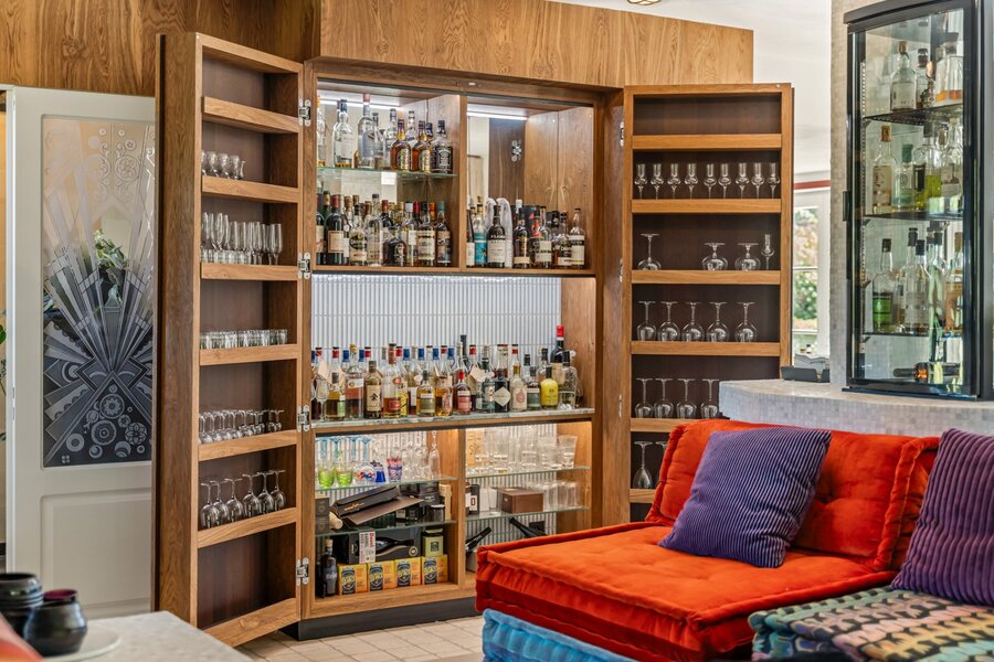 En passant par l'élégant hall d'entrée, vous entrez dans la salle à manger élégante, qui se transforme en un salon chaleureux et accueillant - avec un authentique four à pizza, parfait pour des soirées conviviales. La cuisine récemment rénovée est entièrement équipée et constitue le cœur culinaire de la maison : un endroit pour les repas quotidiens et les dîners raffinés.