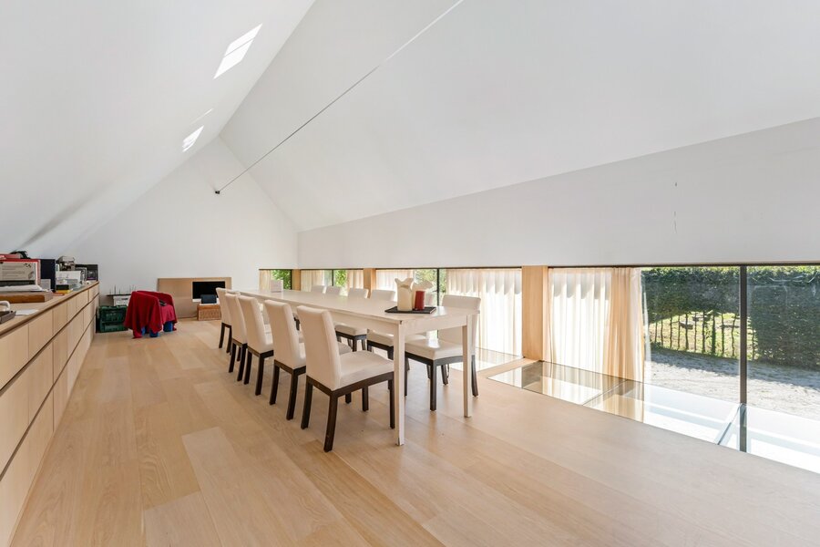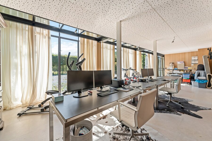 Ce qui rend cette propriété unique, c'est l'espace bureau séparé d'environ 100 m², avec vue sur le jardin. L'espace est équipé de possibilités de stockage et d'un WC séparé - idéal pour ceux qui souhaitent combiner travail et vie privée sans sacrifier le confort ou l'intimité.