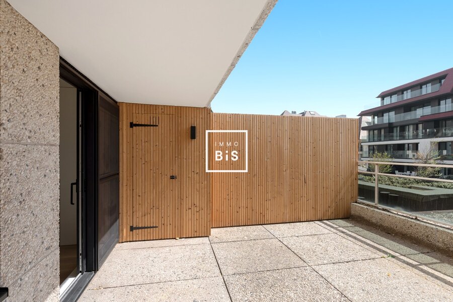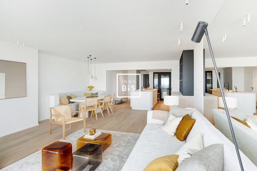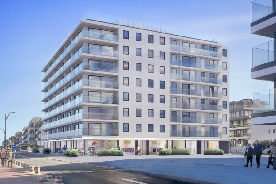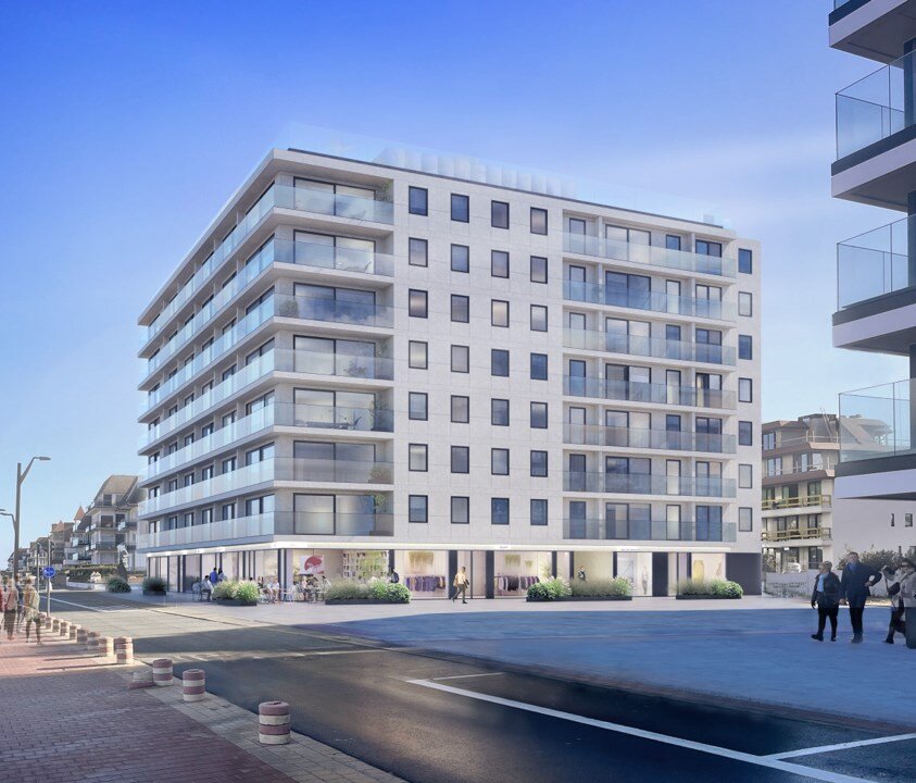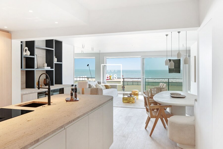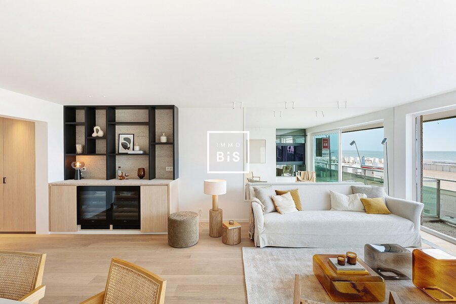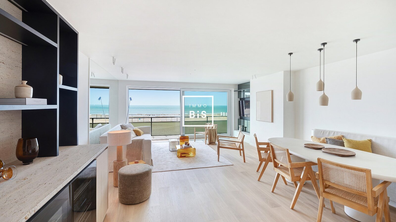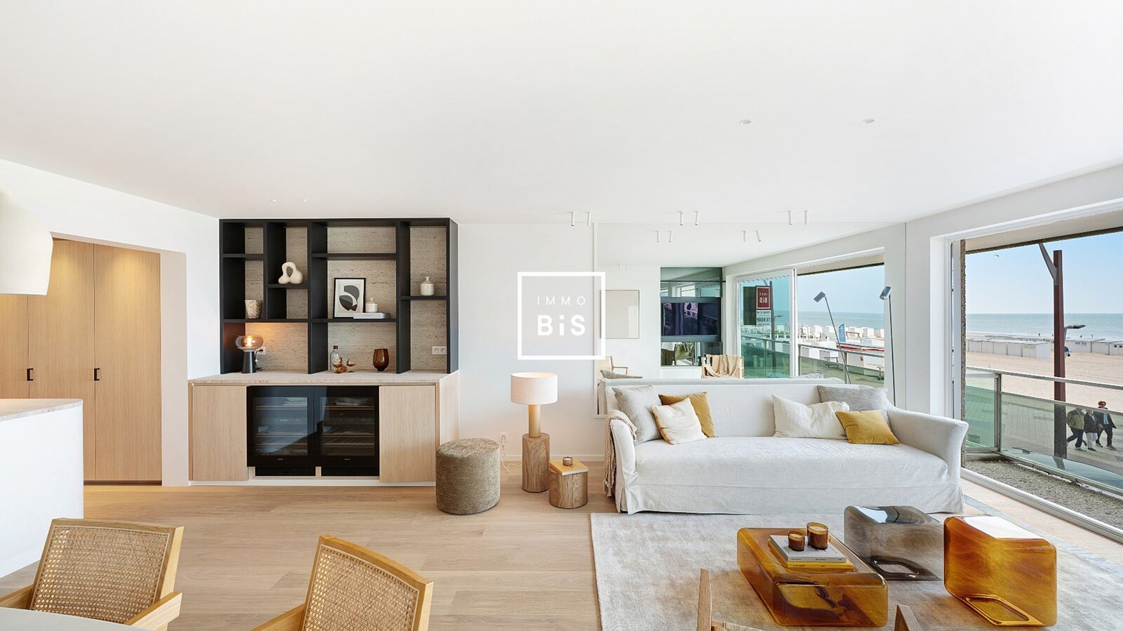 Appartement élégant au premier étage d'une résidence prestigieuse sur la digue du Zoute, avec une façade de 5,20 mètres de large et une vue imprenable sur la mer.