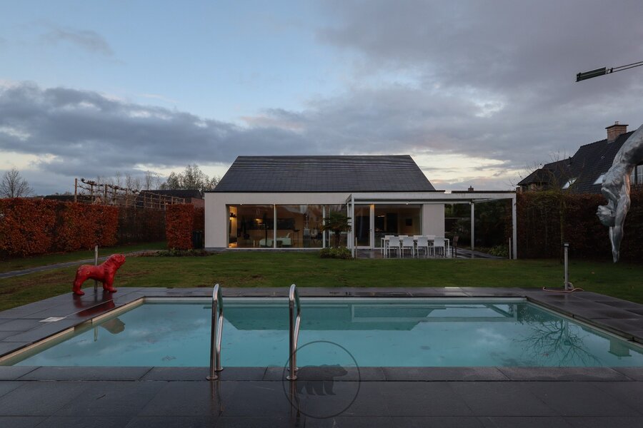 Deze minimalistische villa met verwaarloosbaar energieverbruik is een droom voor wie op zoek is naar hedendaags comfort en luxe op toplocatie.