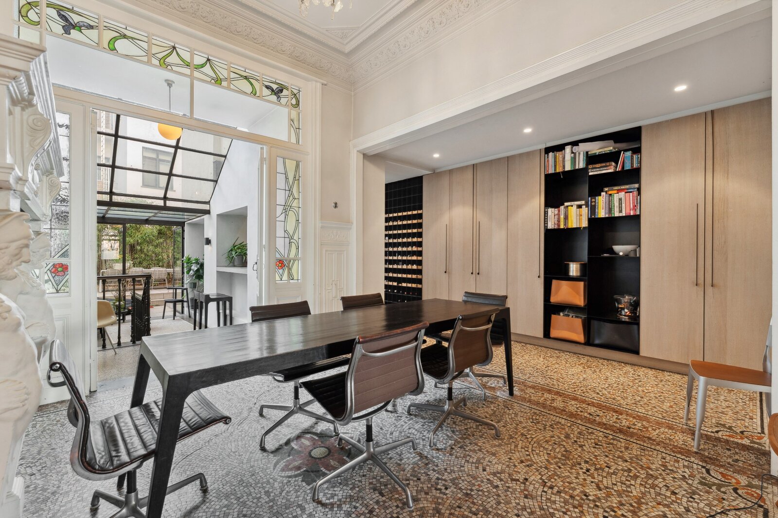 Elle a été rénovée en 2012 par l'architecte d'intérieur Cy Peys. Elle dispose d'un agréable jardin-terrasse avec cuisine extérieure. Elle comprend plusieurs espaces de vie, une cuisine entièrement équipée et un bureau séparé. Avec 4 à 5 chambres, 3 salles de bains et quelques pièces supplémentaires aux étages intermédiaires, il y a suffisamment d'espace pour toute la famille.