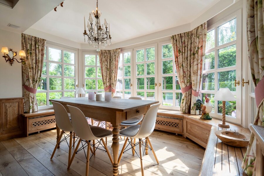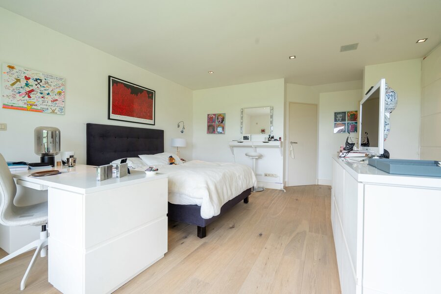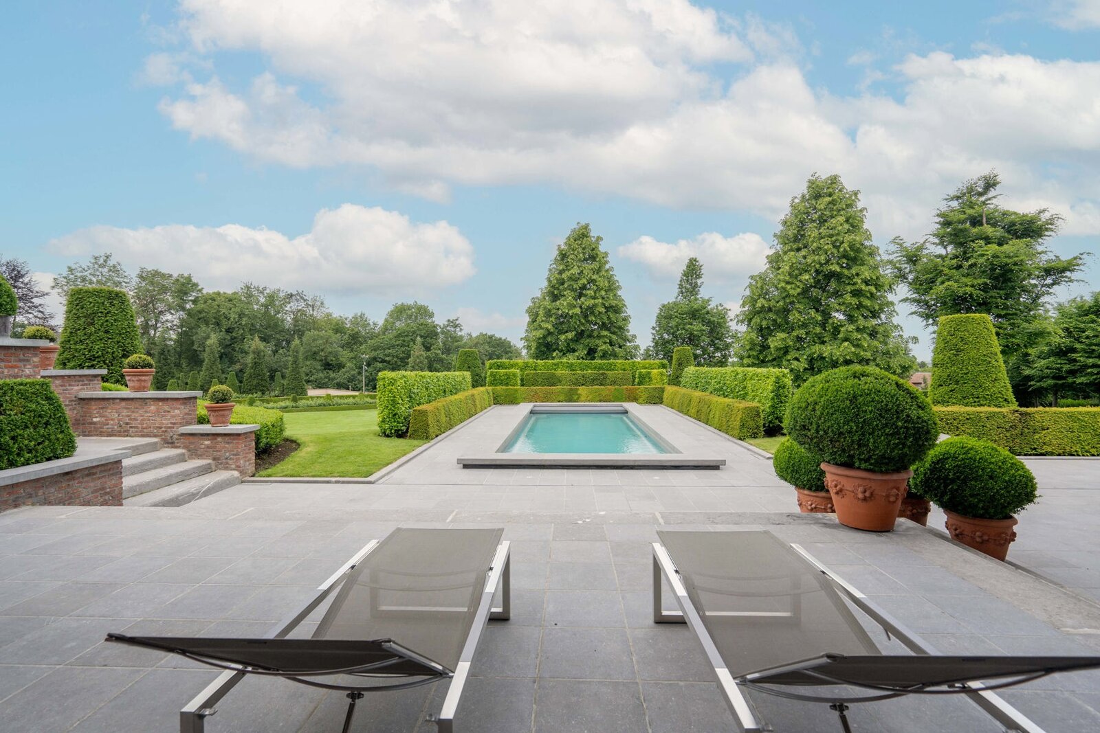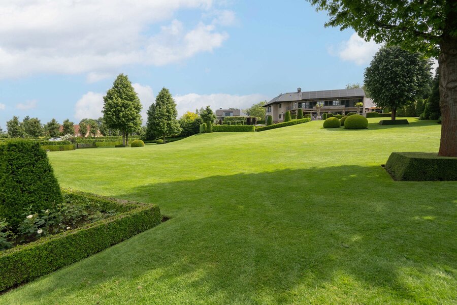 Dit is de perfecte woning voor de paardenliefhebber. Er bevinden zich drie stallen achteraan op het domein en er kan een weide van één hectare gehuurd worden. De villa heeft een bewoonbare oppervlakte van 1000 m². De leefruimtes zijn voorzien van prachtig houtwerk en in de uitnodigende inkomhal ligt er een natuurstenen vloer. De grote raampartijen bieden bieden een adembenemend zicht over de tuin en het royale terras.