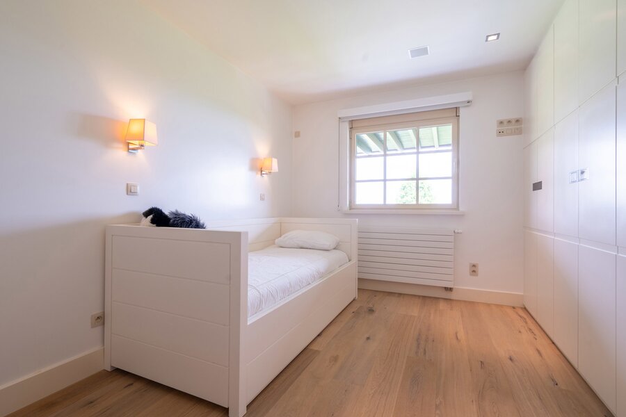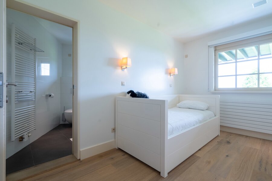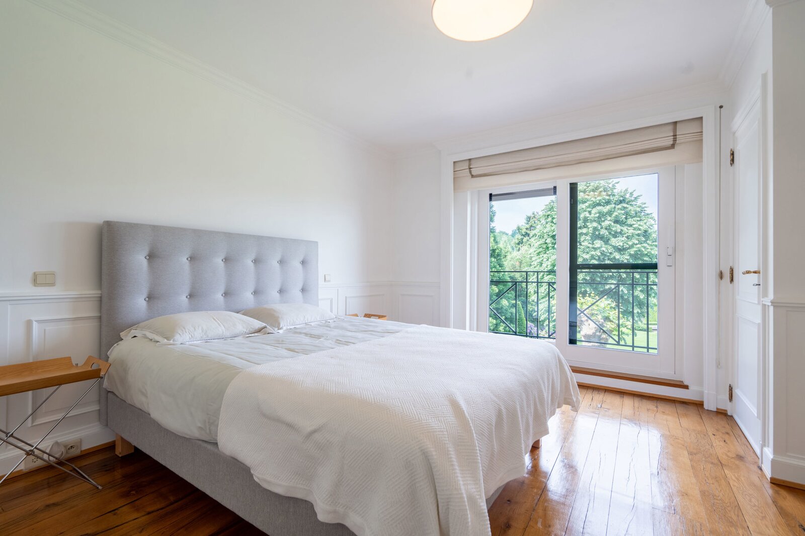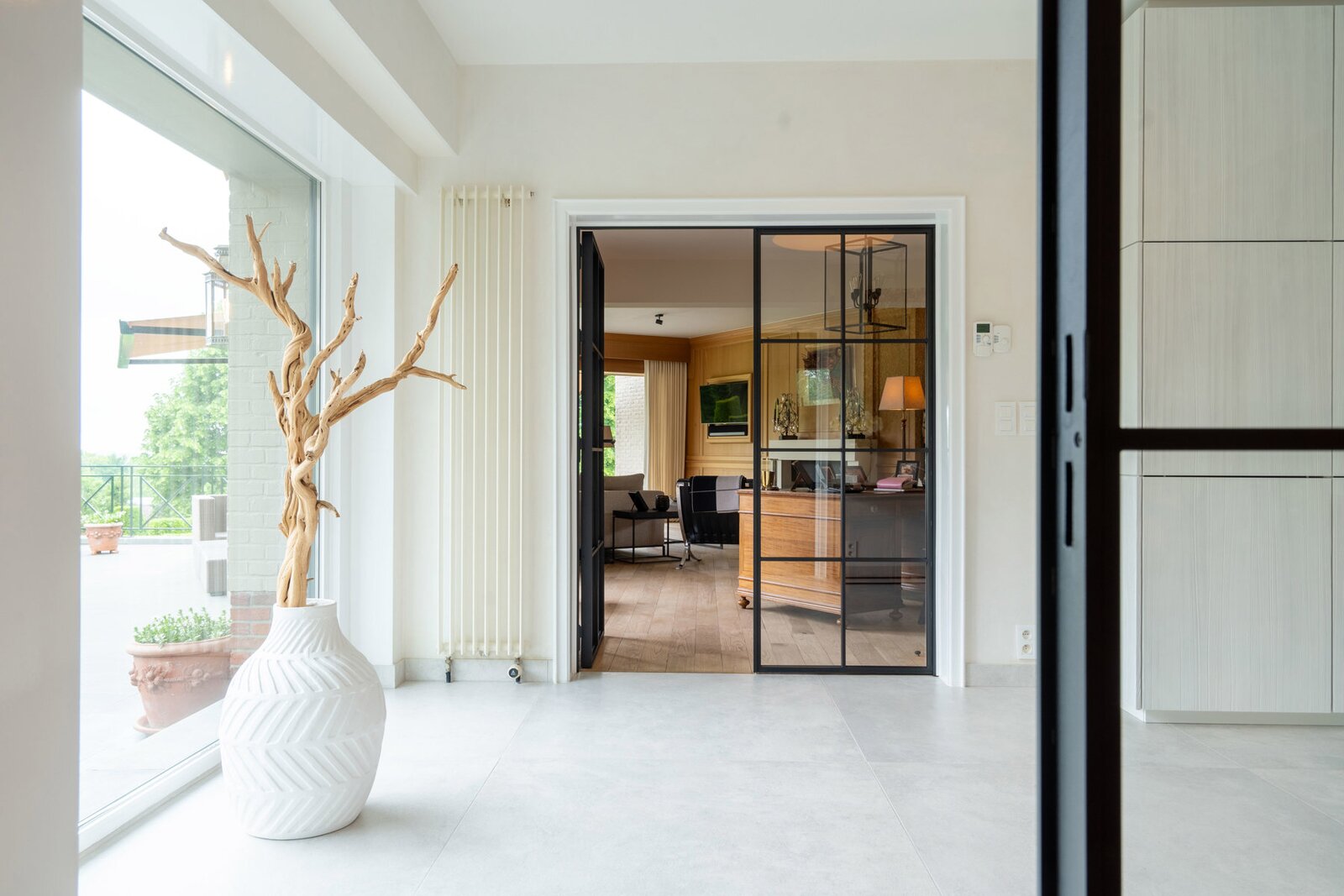 Dit is de perfecte woning voor de paardenliefhebber. Er bevinden zich drie stallen achteraan op het domein en er kan een weide van één hectare gehuurd worden. De villa heeft een bewoonbare oppervlakte van 1000 m². De leefruimtes zijn voorzien van prachtig houtwerk en in de uitnodigende inkomhal ligt er een natuurstenen vloer. De grote raampartijen bieden bieden een adembenemend zicht over de tuin en het royale terras.