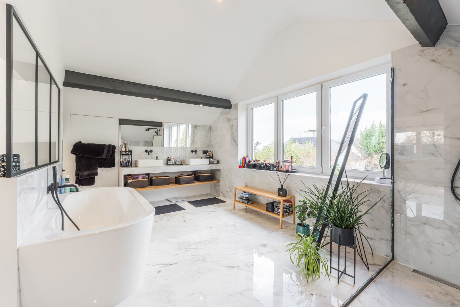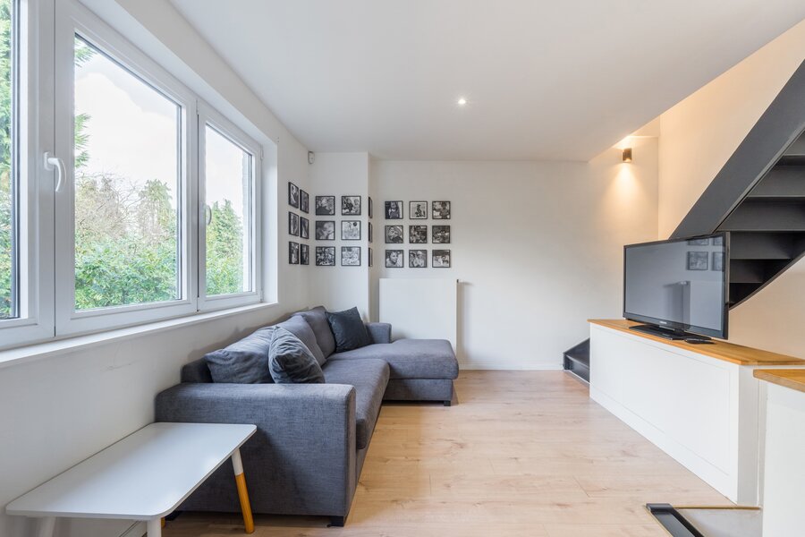 UCCLE - FORT JACO, dans une rue calme proche des commerces et du tram, charmante MAISON (4ch/3SDB) lumineuse villa meublée, entièrement rénovée contemporaine. Elle est composée d'un hall d'entrée avec vestiaire et toilettes invités, spacieux séjour de ±56m² donnant sur le jardin, cuisine ouverte familiale entièrement équipée avec îlot central et accès à une terrasse de ±45m² exposée Sud. Le 1er étage offre un pallier dégagé idéal pour l' espace TV ou bibliothèque, chambre de ±16m² avec salle de douche en suite, 2 chambres de ±18 -15m², salle de bains double vasque. L'étage supérieur s'ouvre sur un vaste espace parental, chambre de ±28m², dressing, salle de bains et douche. Le sous-sol offre des nombreux espace de rangement, local technique, buanderie et garage. Mobilier de qualité. PEB : E. En exclusivité chez L&P !