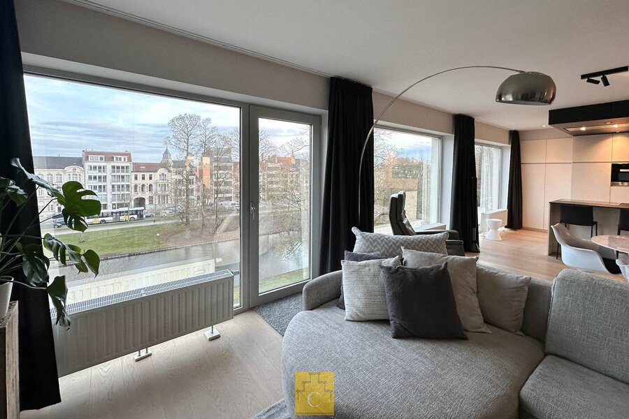 Een droomligging, op een steenworp van de binnenstad, in een rustige fietsstraat, zicht op het water ('t Stil Ende', vlakbij het Graaf Visartpark. Een droomflat, je woont helemaal bovenaan in een kleinschalige residentie met lift. Het gebouw werd vrij recent (2017) volledig gestript en smaakvol gerenoveerd. De penthouse is the top of the bill. Circa 115 m2 vloeroppervlakte, met een ruim terras (Z/W oriëntatie) met buitenberging. De indeling : mooie inkomhal, gastentoilet, een wow living in parket met strakke witte keuken (alle toestellen en heel wat kastruimte) en grote glaspartijen (wat een uitzicht !). Er zijn 3 slaapkamers en een goed voorziene badkamer met diepe inloopdouche en dubbel lavabomeubel. In de garage op het gelijkvloers kan een grote autostandplaats bijgekocht worden.CV gas (condensketel). Airco. Niet gelegen in een risicozone voor overstromingen. P-score : A, G-score : A.