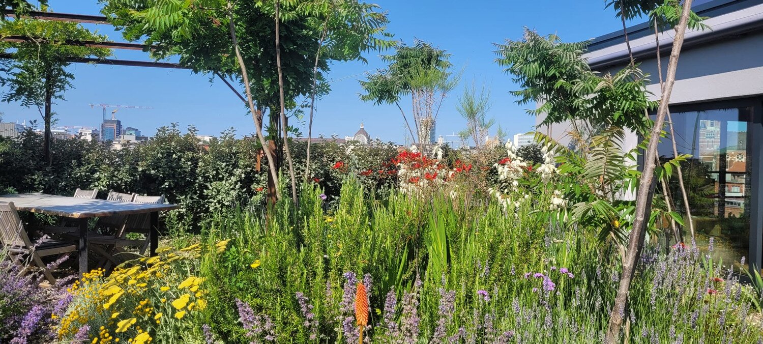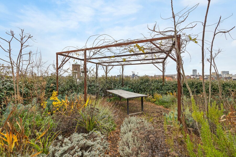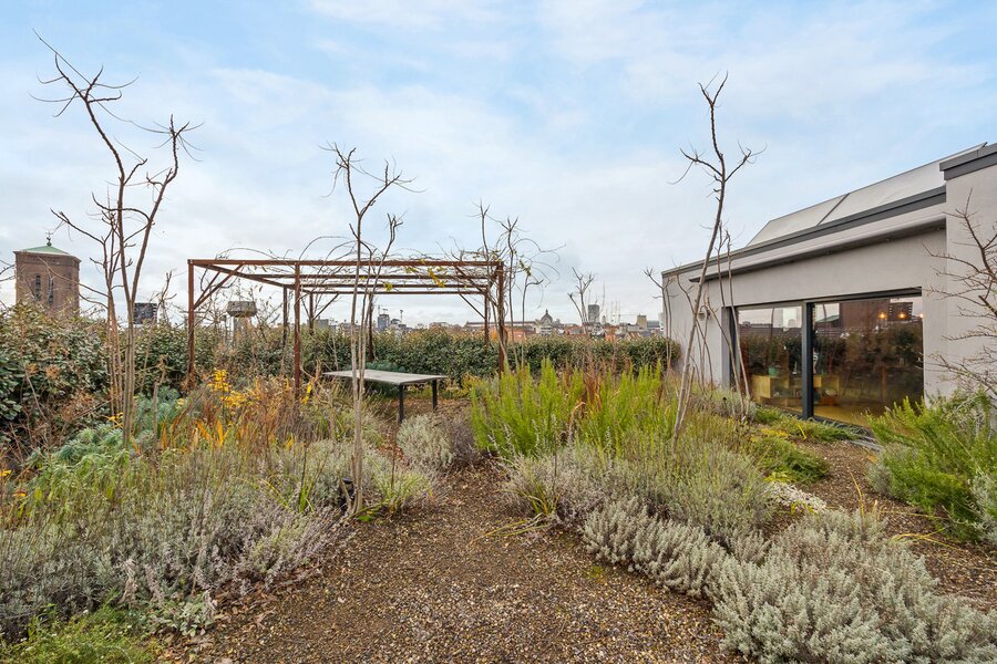 De spectaculaire privatieve daktuin, aangelegd in 2024 door befaamde landschapsarchitecten Bart & Pieter, vormt een absolute blikvanger en tilt dit woonvolume naar een uniek totaalconcept.