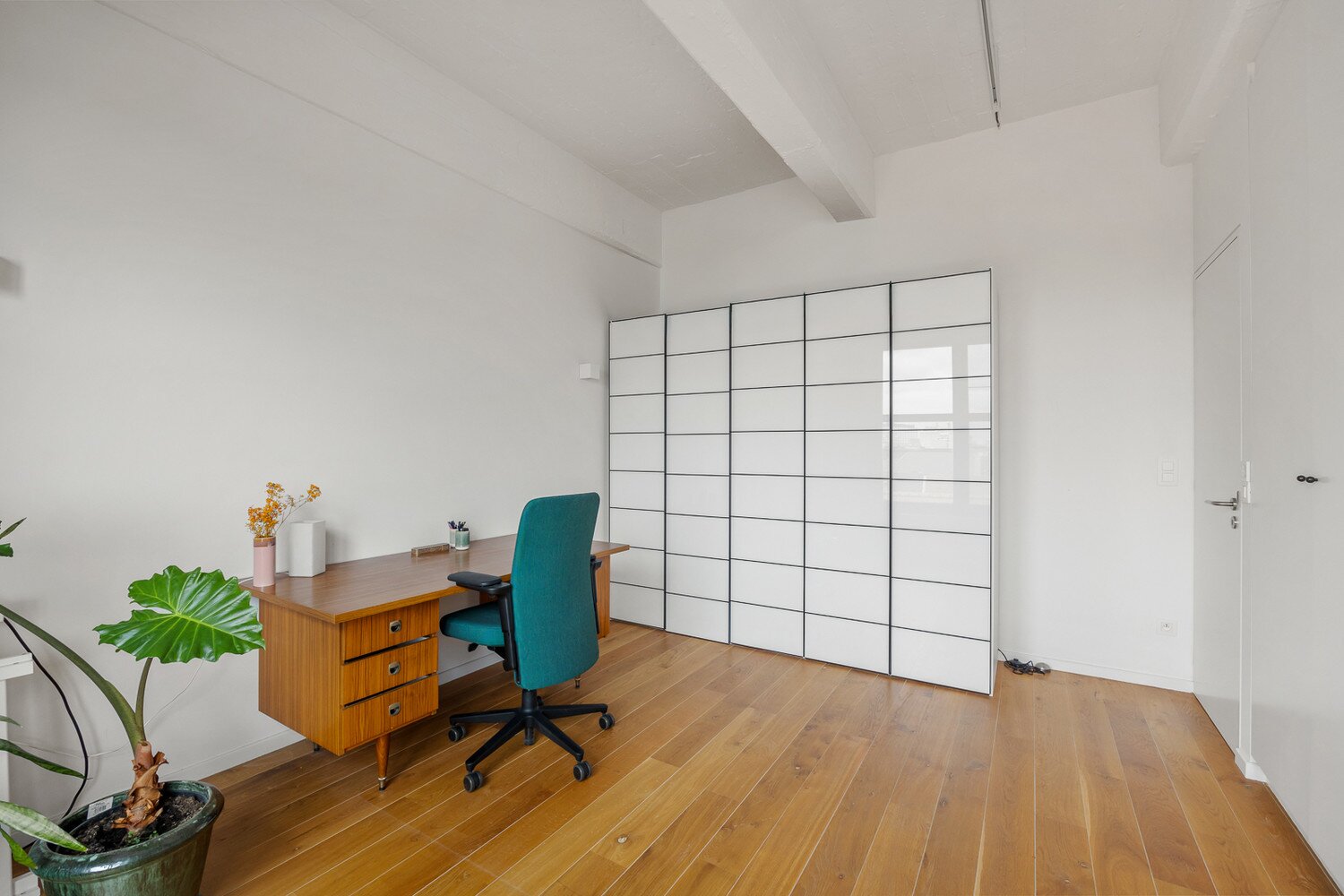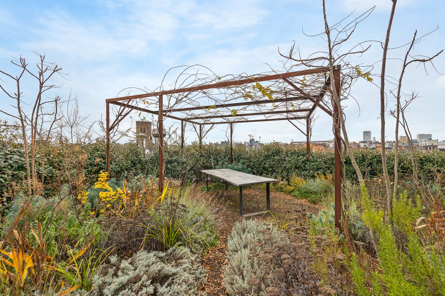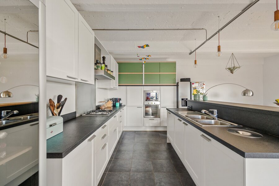 Penthouse loft van 200m² met unieke daktuin van 126m² (+ terras 10m²) in het rustige, beschermde binnengebied van het iconische Martougin-complex, een groen woonerf op een boogscheut van de binnenstad en toch dichtbij alle invalswegen.