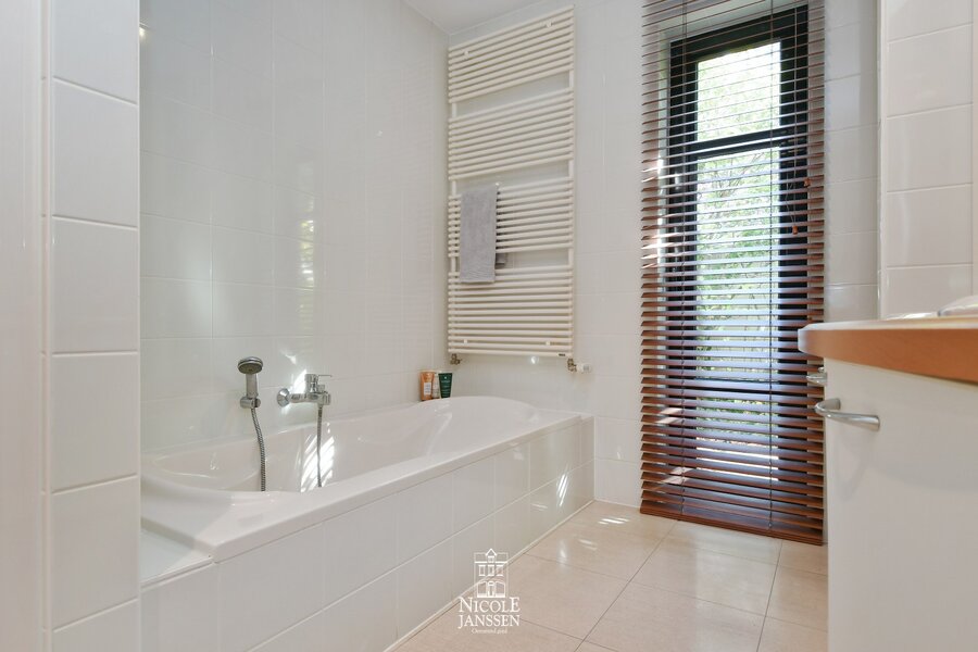 - Badkamer met ligbad, ruime inloopdouche en dubbele wastafel