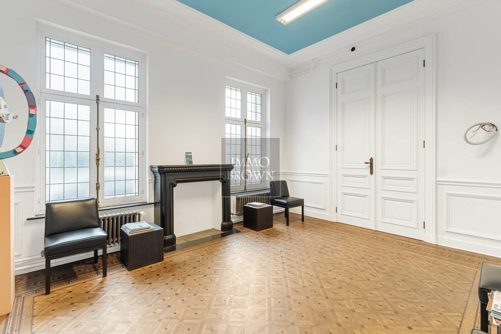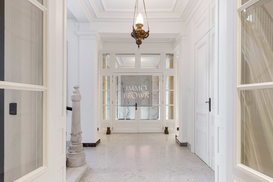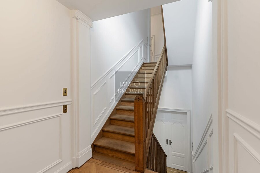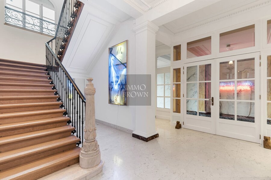 Un impressionnant portail de passage vous mène à une cour intérieur avec des possibilités de stationnement. L’entrée principale s’ouvre sur un vaste hall royal avec toilettes invités et accès à la majestueuse cage d’escalier. Une entrée séparée permet d'accéder à la partie professionnelle comprenant un bureau d’accueil, trois bureaux, deux salles de réunion dont une pouvant servir d’espace déjeuner, deux toilettes et une grande salle d’attente. Cette partie de la maison offre également la possibilité d'agrandir la surface habitable, rendant cette propriété encore plus spacieuse et luxueuse.