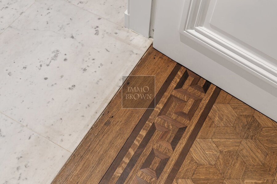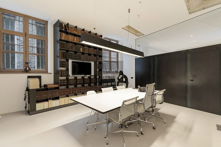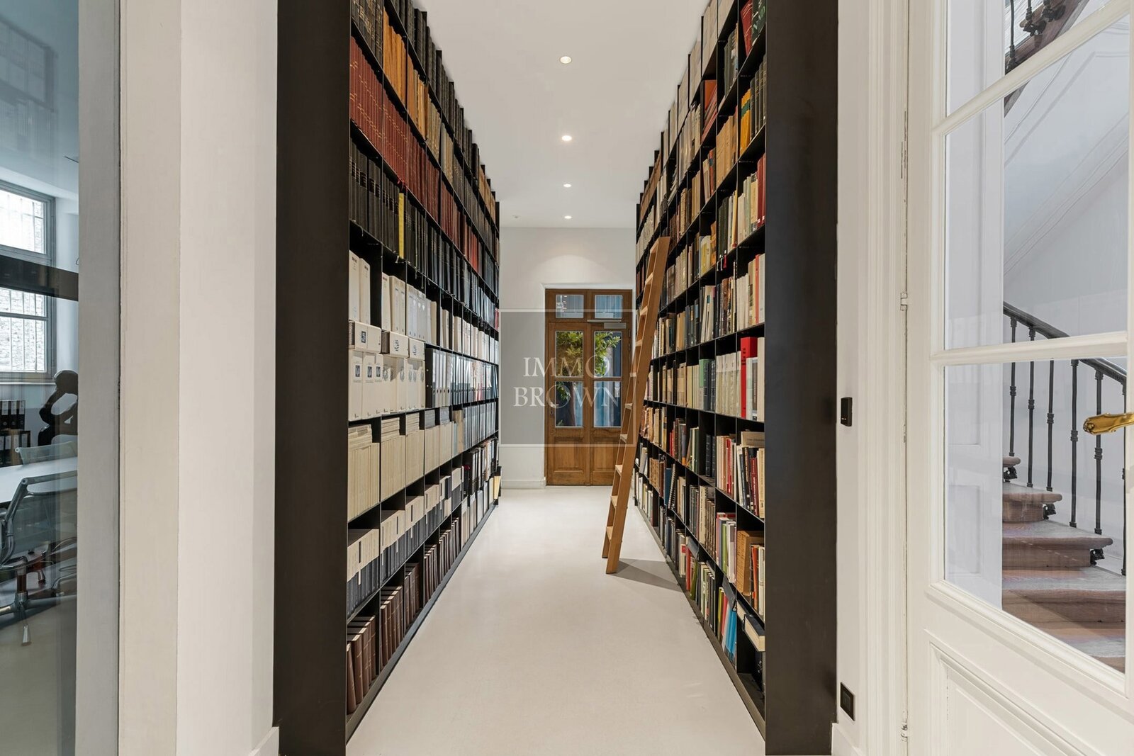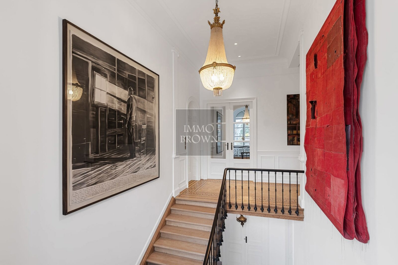 Un impressionnant portail de passage vous mène à une cour intérieur avec des possibilités de stationnement. L’entrée principale s’ouvre sur un vaste hall royal avec toilettes invités et accès à la majestueuse cage d’escalier. Une entrée séparée permet d'accéder à la partie professionnelle comprenant un bureau d’accueil, trois bureaux, deux salles de réunion dont une pouvant servir d’espace déjeuner, deux toilettes et une grande salle d’attente. Cette partie de la maison offre également la possibilité d'agrandir la surface habitable, rendant cette propriété encore plus spacieuse et luxueuse.