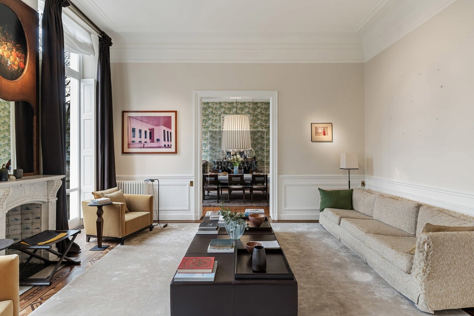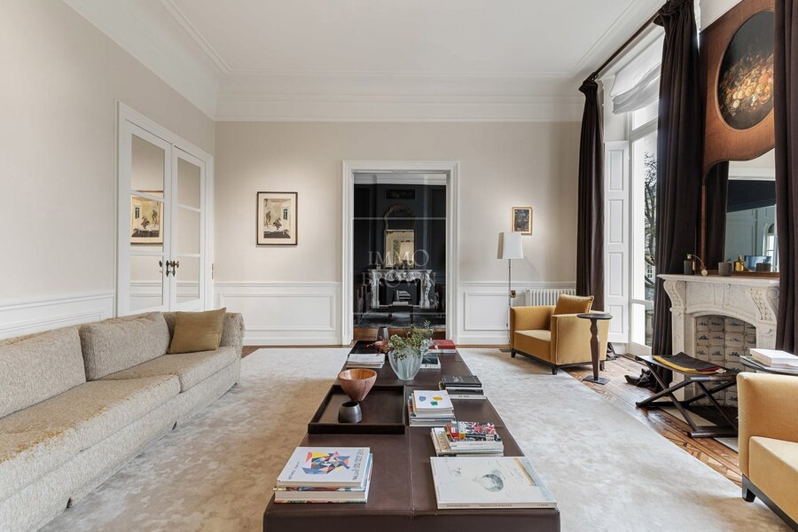 Accessible par ascenseur ou escalier, cet étage comprend un vaste bureau privé, un salon et un fumoir communicant avec l’élégante salle à manger par de majestueuses portes doubles. Hautes fenêtres, cheminées en marbre et éléments décoratifs d’époque confèrent une élégance intemporelle, alliée au confort moderne.