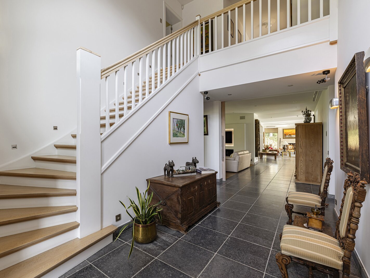 Conçue avec le sens du confort et du raffinement, la maison se distingue par ses finitions haut de gamme et son agencement réfléchi. Le vaste hall d’entrée avec vestiaire mène vers les pièces de vie lumineuses, où de grandes baies vitrées offrent une superbe connexion avec le jardin orienté sud‑est. Le séjour spacieux et la salle à manger donnent accès à la terrasse aménagée et la piscine privée.