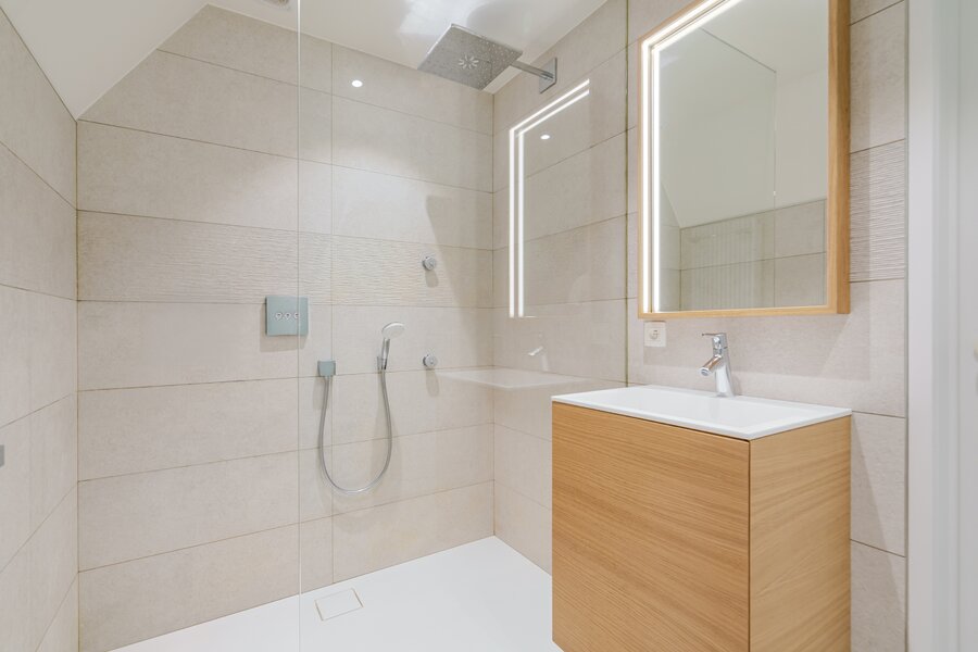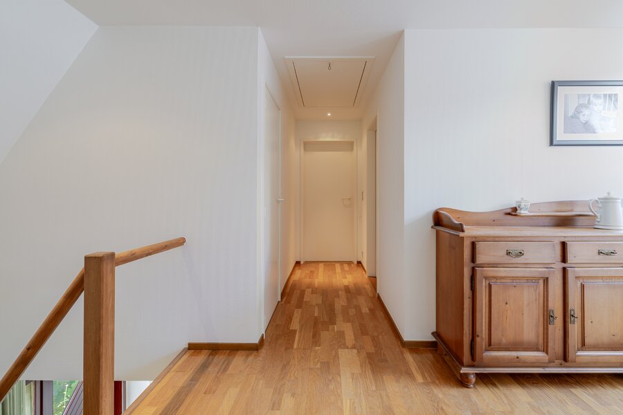 Au premier étage, nous trouvons 3 chambres spacieuses, une salle de douche entièrement rénovée et une salle de bains spacieuse. Il y a également un accès au grenier.