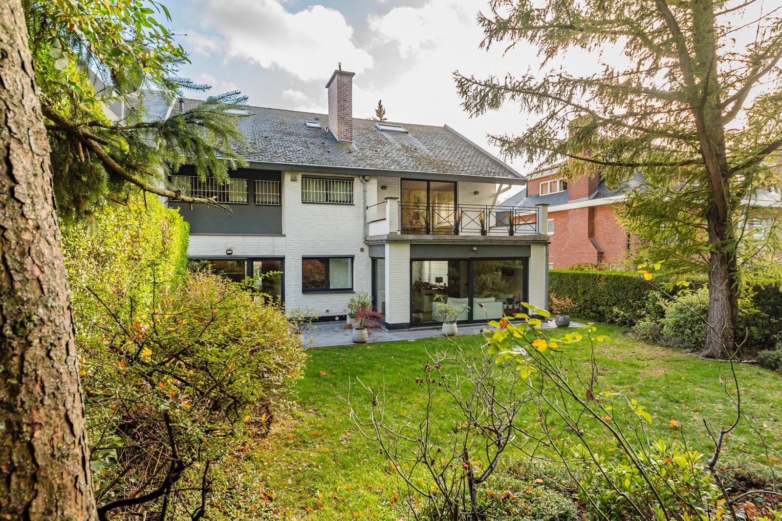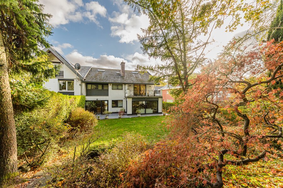 Idéalement située dans une avenue calme et verdoyante de Woluwe-Saint-Pierre, à proximité immédiate des écoles, commerces et transports, spacieuse maison 3 façades alliant charme, confort et volumes exceptionnels. Édifiée sur un terrain de 9 ares 16, elle a bénéficié d’une rénovation complète et d’une extension en 2008, offrant aujourd’hui une surface habitable de ±335 m² (±385 m² construits). Elle se compose comme suit :
