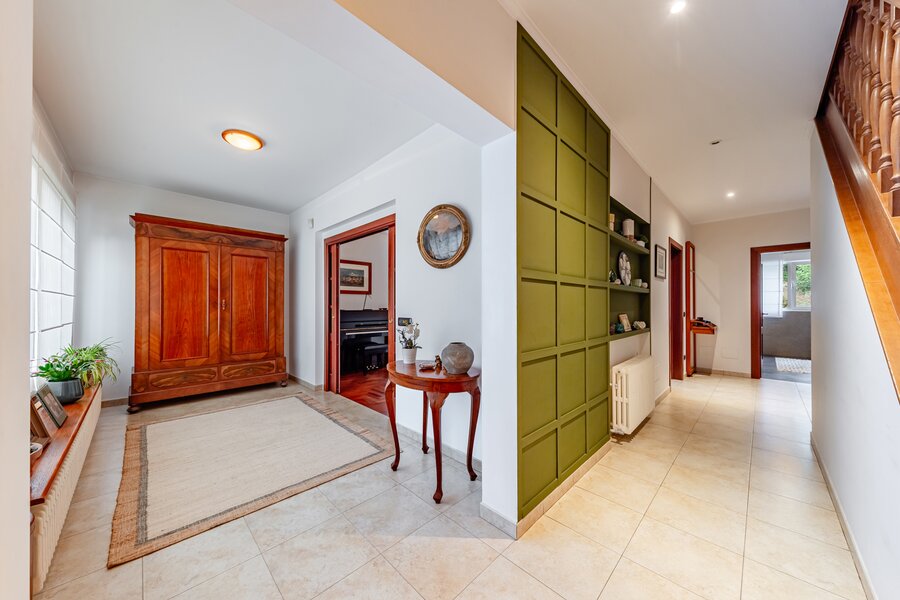 Spacieux hall d’entrée carrelé de ±28 m² avec vestiaire