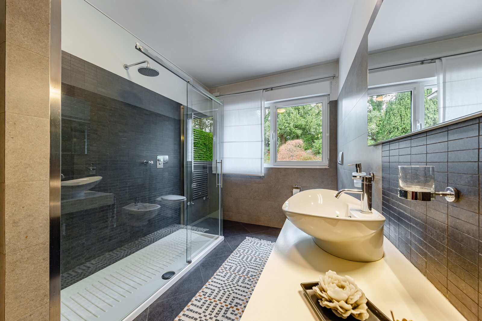 Salle de douche avec WC, bidet et lavabo (±8 m²)