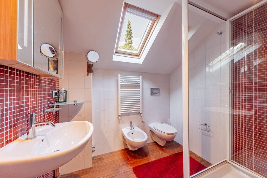 Salle de douche avec WC, bidet et lavabo (±10 m²)