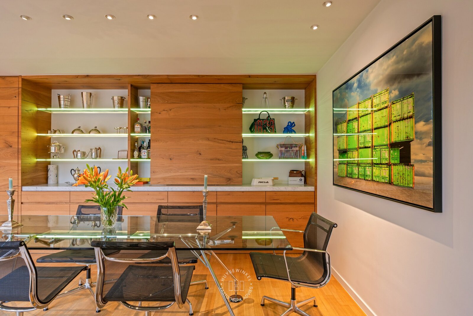 Het appartement werd in 2021 volledig en hoogwaardig gerenoveerd, met oog voor detail, maatwerk en luxe. De open leefruimte met stijlvolle houthaard vormt het warme hart van de woning en sluit naadloos aan op de rest van het interieur. De master bedroom beschikt over een privatieve dressing en een elegante badkamer met ligbad. De tweede slaapkamer bevindt zich aan de andere zijde van de penthouse en garandeert volledige privacy, met een eigen douchekamer. Overal zorgen grote raampartijen voor een blijvende connectie met de groene omgeving, wat dit penthouse tot een bijzonder aangename en exclusieve woonplek maakt.