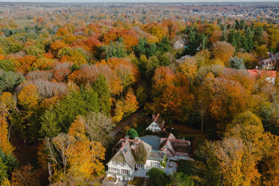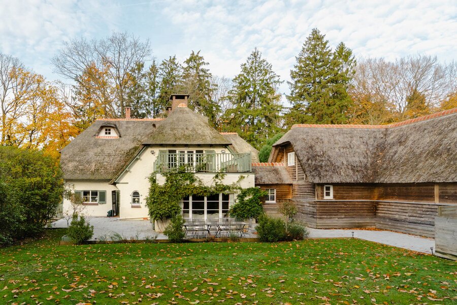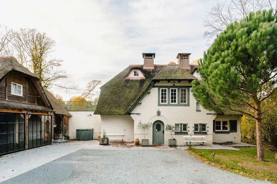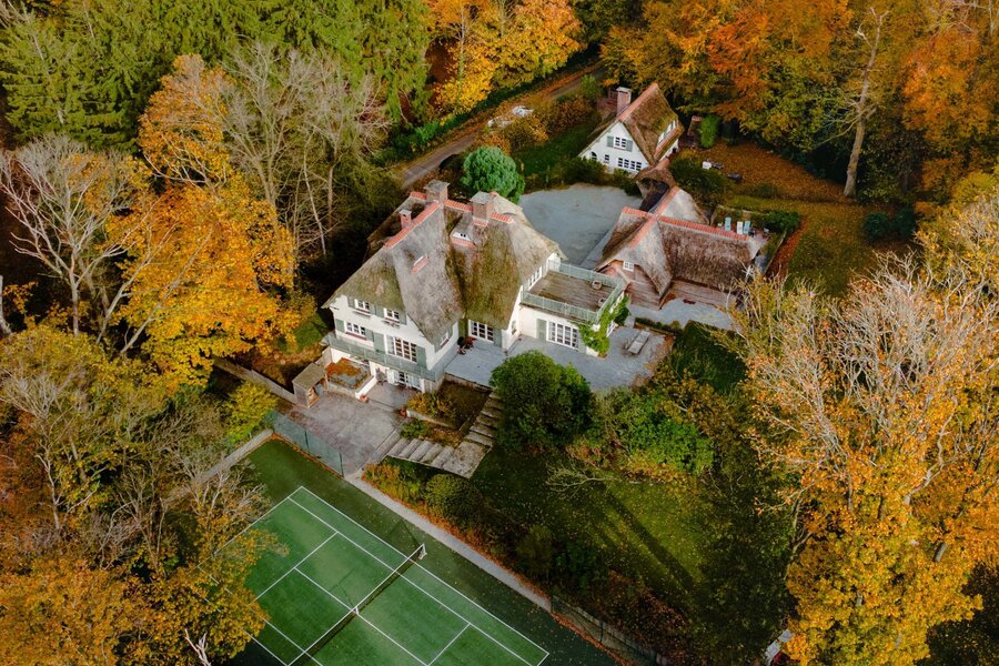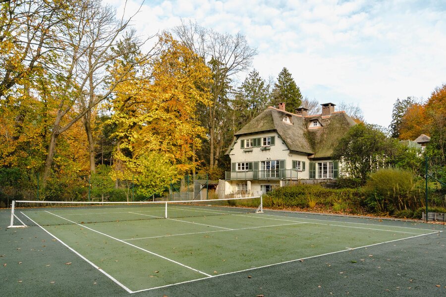 Entre l'International German School et la British School of Brussels, propriété sur un terrain arboré de ± 48 ares, agrémenté d'un court de tennis, composée d'une villa et d'une conciergerie à toit de chaume.