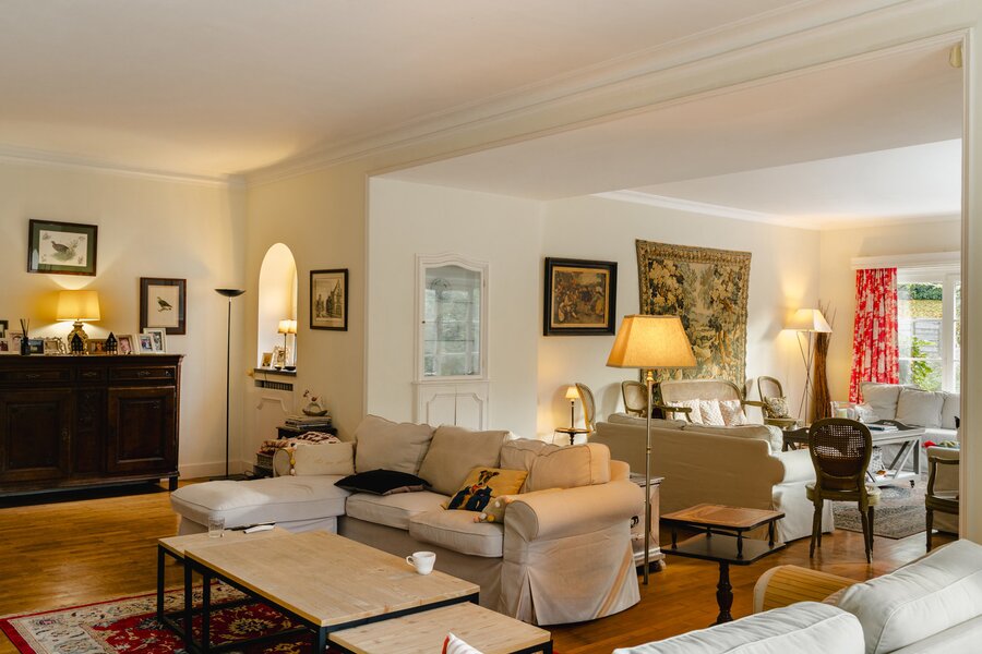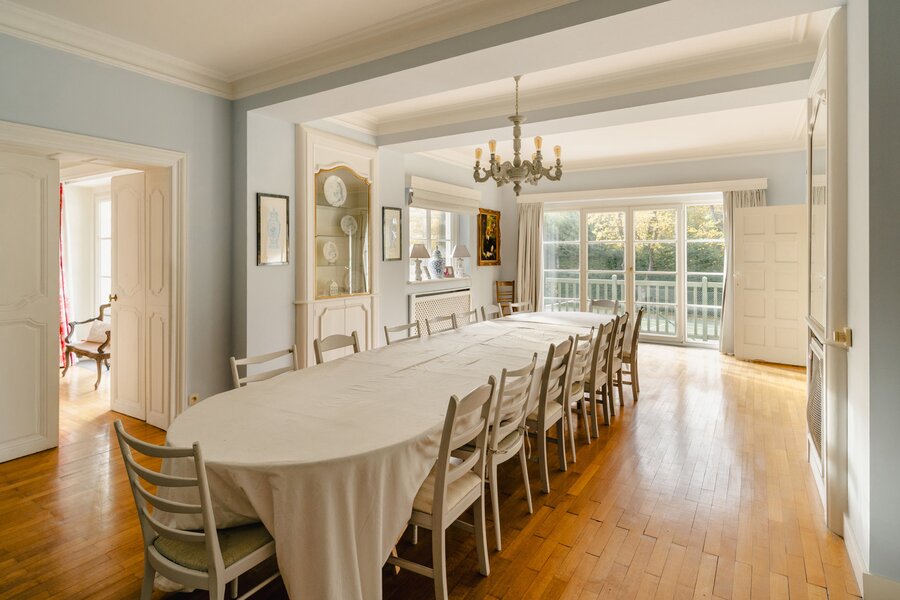 Alliant charme et confort, la maison principale se compose d'un hall d'entrée desservant de spacieuses réceptions: double salon avec feu ouvert, s'ouvrant sur la terrasse et le jardin, vaste salle à manger idéale pour les réceptions, salle à manger plus intimiste avec poêle à bois, cuisine équipée, bureau et accès de service. La partie nuit offre une chambre des maîtres jouissant d'une terrasse et d'une salle de bain en suite ainsi que quatre autres chambres et deux salles de bains. La conciergerie (personnel ou invités) offre un espace de vie avec cuisine équipée, deux chambres et une salle de bain. Cette propriété exceptionnelle, anciennement résidence d'ambassadeur, convient tant au monde diplomatique et institutions qu'aux familles intergénérationnelles offrant également une possibilité pour une profession libérale/activité professionnel.