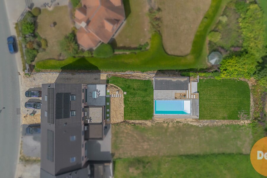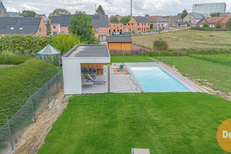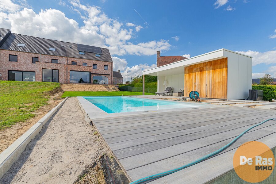 De woning is bovendien volledig onderkelderd, wat tal van mogelijkheden biedt: een fitnessruimte, hobbykamer, wijnkelder of extra bergruimte. Buiten wacht een oase van ontspanning met een zwembad, zonnig terras en een elegant poolhouse.