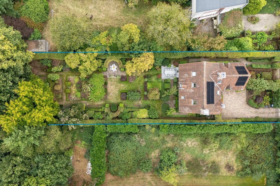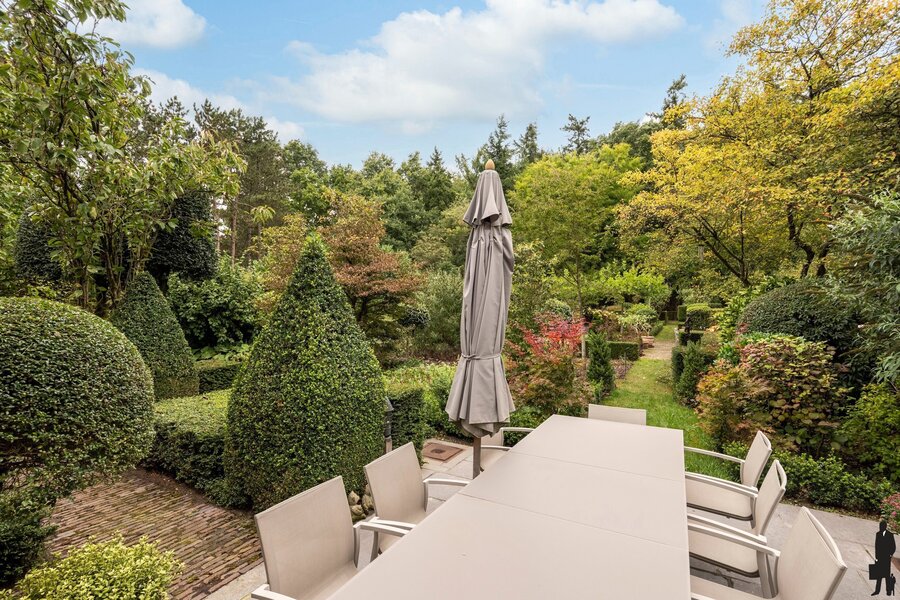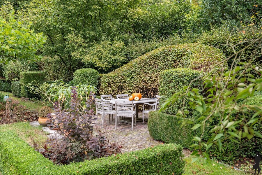Omringd door natuur en bos is deze tuin is aangelegd onder architectuur en biedt elk seizoen een boeiend geheel dankzij de volgroeide hagen, doordachte rustpunten en een verfijnde plantenkeuze. De tuin is volledig afgesloten, zuidwest georiënteerd en voorzien van verlichting en drie gezellige terrassen, waardoor het in alle seizoenen een heerlijke plek is om te genieten.