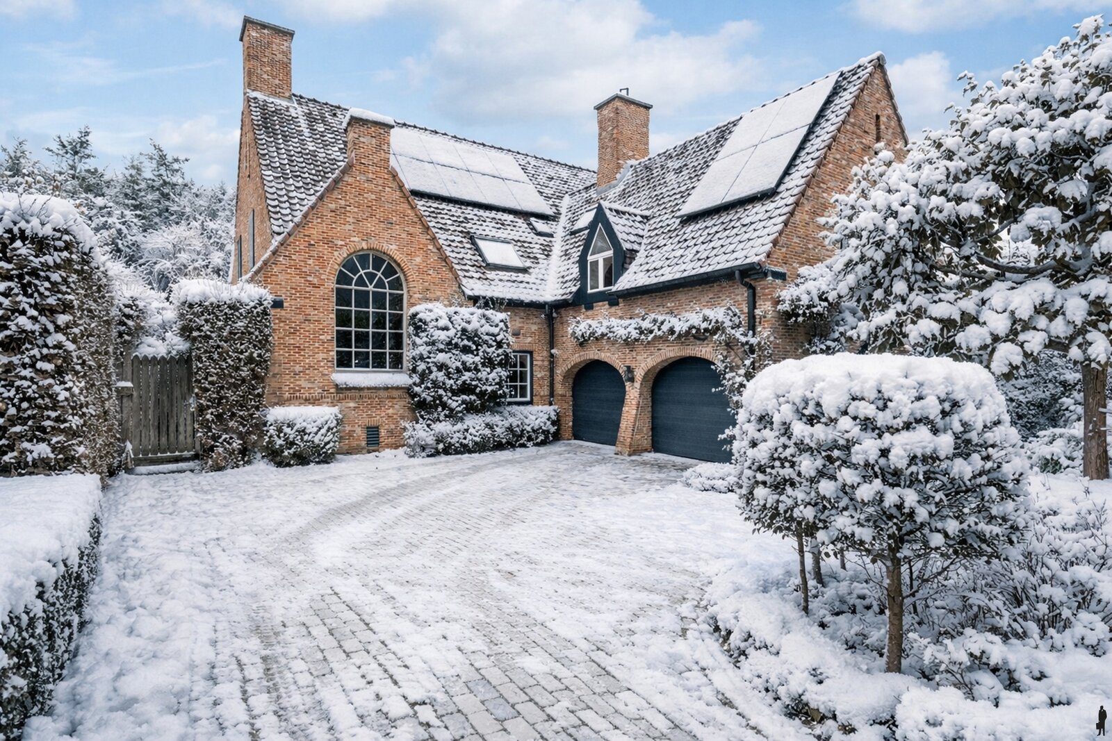 Een ruime, lichtrijke inkomhal met vestiaire en gastentoilet biedt toegang tot het woongedeelte, het trappenhuis en de keuken. Vanaf het eerste moment valt de villa op door haar uitstekende staat van onderhoud en de keuze voor bijzonder mooie en duurzame materialen. In de woonkamer is het heerlijk vertoeven. Vanuit elke hoek behoudt u het contact met de prachtig aangelegde tuin. De zithoek is centraal gesitueerd bij de open haard en televisie, terwijl de bibliotheek uitkijkt over de oprit en de eetkamer een prachtig zicht heeft op de achtertuin. De ruimte is speels ingedeeld en uitgerust met stijlvolle maatwerkkasten en airconditioning. De keuken vormt het hart van de woning. Hier kunt u gezellig tafelen met uitzicht op de tuin. Bij mooi weer openen de tuindeuren rechtstreeks naar het terras. De keuken is volledig uitgevoerd in maatwerk met hoogwaardige toestellen en heeft een rechtstreekse verbinding met de inkomhal. Verder nog een dubbele inpandige garage met automatische poorten, wat in- en uitrijden bijzonder comfortabel maakt. Boodschappen brengt u handig naar de kelder of rechtstreeks naar de keuken. Een ruime wasplaats is eveneens voorzien van ingebouwde kasten.