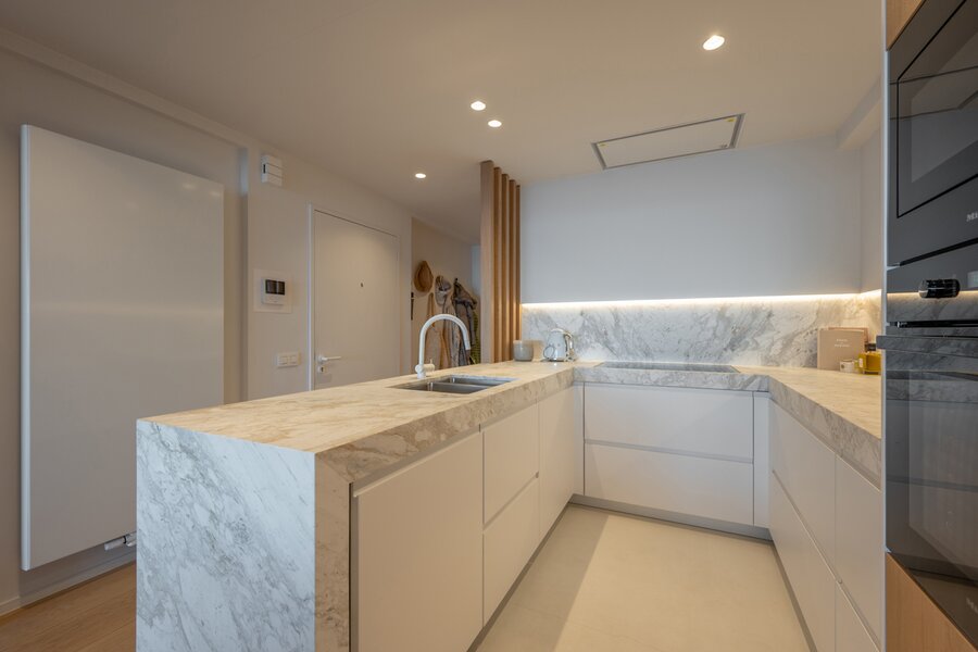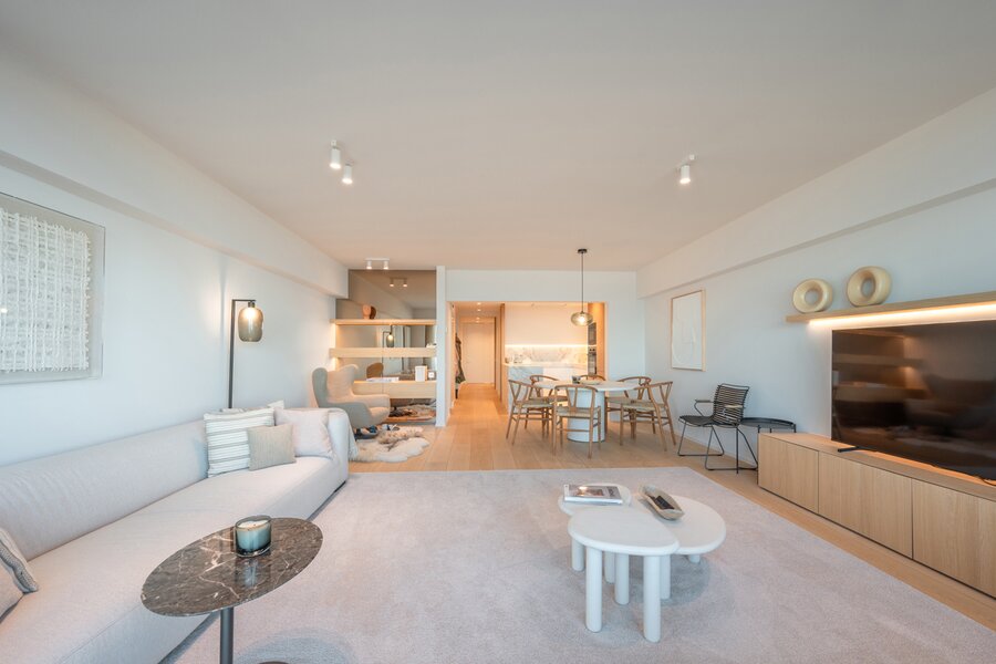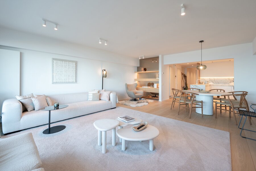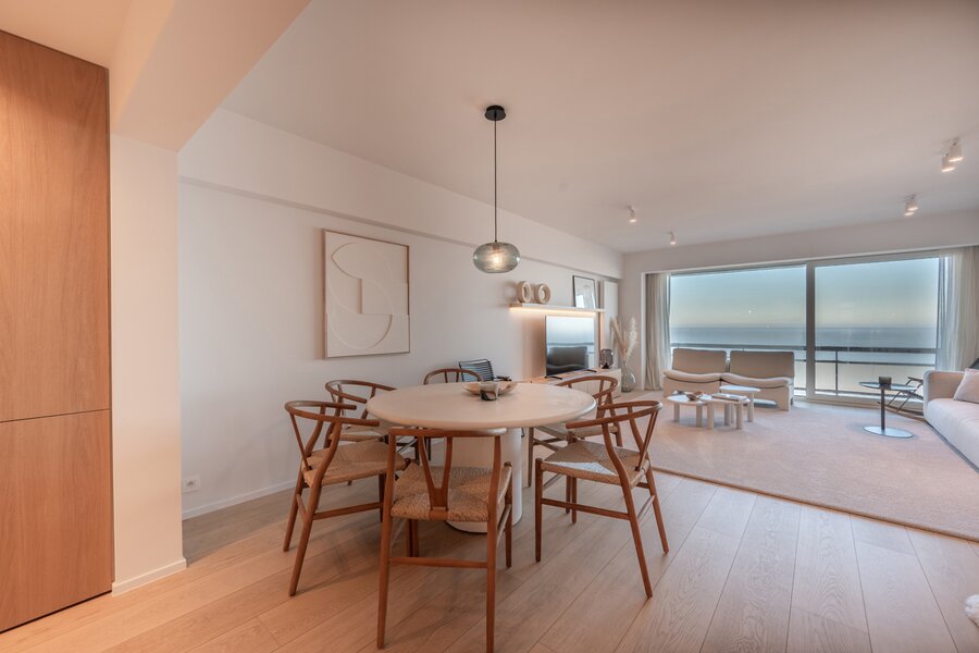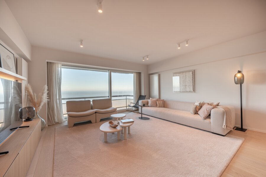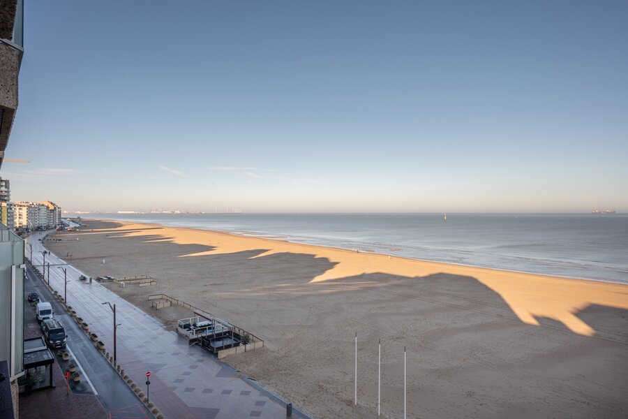 A VENDRE EXCLUSIF CHEZ DIRK WILLEMYNS - Magnifique appartement de rêve, totalement rénové avec vue mer imprenable au Zoute, au sixième étage d'une petite résidence (1 appartement par niveau) située entre la Place Albert et la digue piétonne. Composition: hall d'entrée avec vestiaire et toilette. Séjour-salle à manger très spacieux avec vue mer et terrasse à l'avant. Cuisine américaine équipée (Appareils Miele). Master bedroom avec des armoires encastrés et salle de douche attenant. Chambre à coucher bien proportionné avec, aussi donnant sur terrasse sud à l'arrière. Salle de douche pratique. Troisième chambre plus petite. Cave. Local à vélos. Possibilité de location ou achat d'un emplacement de voiture à deux pas de la résidence. Visites volontiers après rendez-vous en un de nos bureaux. A saisir!