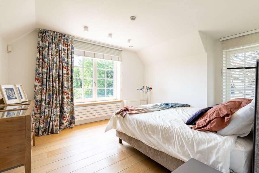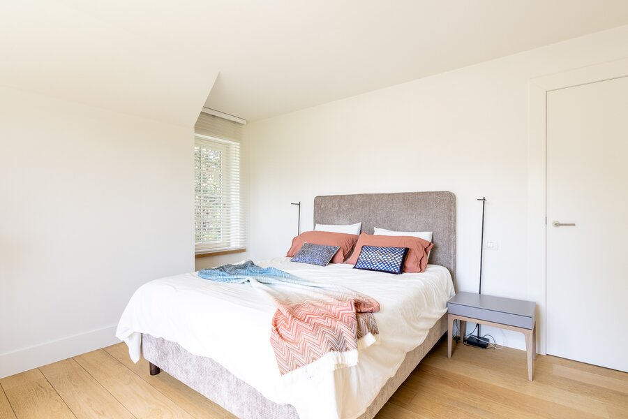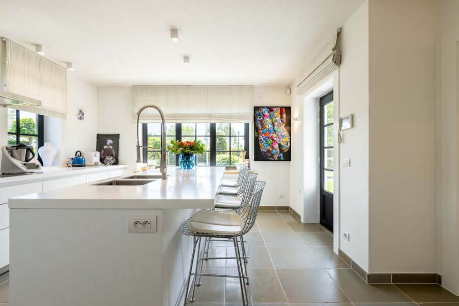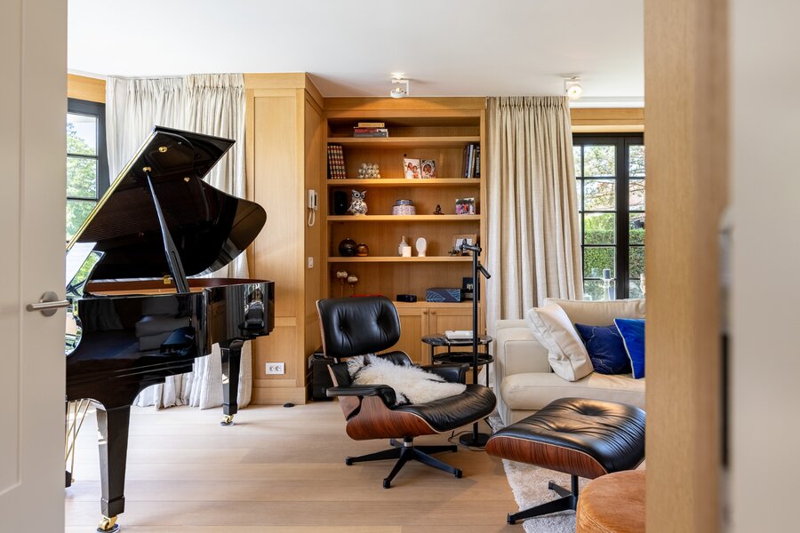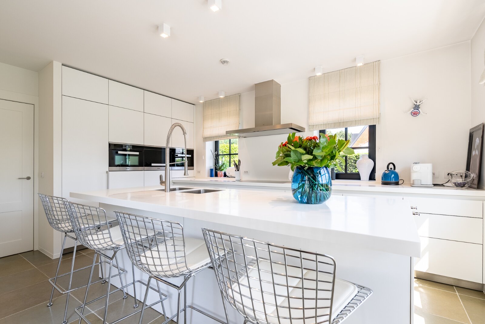 Cette villa de luxe, conçue en 2014 par l'architecte H. Demyttenaere, incarne l’harmonie parfaite entre élégance intemporelle et confort de vie contemporain. Grâce à son jardin entièrement orienté au sud, vous profitez d’un ensoleillement optimal tout au long de la journée ainsi que d’une vue dégagée qui inspire calme et sérénité. Dès l’entrée, vous êtes accueilli dans un hall élégant avec vestiaire et toilette invités, avant de découvrir un vaste espace de vie chaleureux agrémenté d’une cheminée et d’un agréable coin bibliothèque. La salle à manger attenante se prolonge naturellement vers une cuisine Bulthaup haut de gamme, équipée d’appareils Miele, d’un îlot central et d’un coin petit-déjeuner convivial – l’endroit idéal pour ceux qui apprécient la qualité, la fonctionnalité et le raffinement.