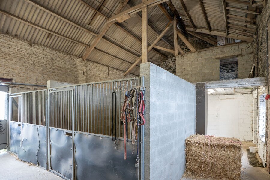 • et une grange en pierres comprenant 4 boxes et offrant un potentiel d’aménagement en habitation secondaire, gîte ou espace professionnel (à restaurer).