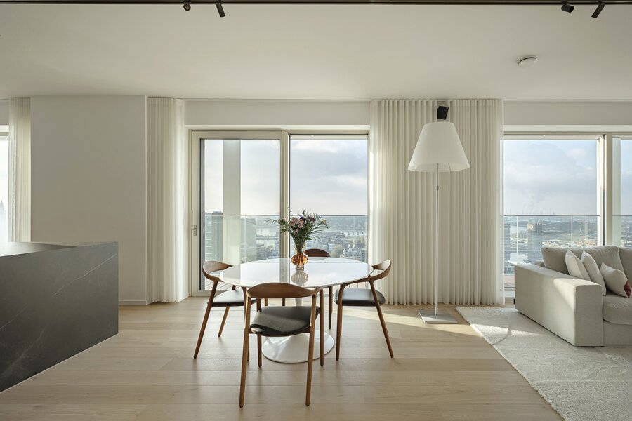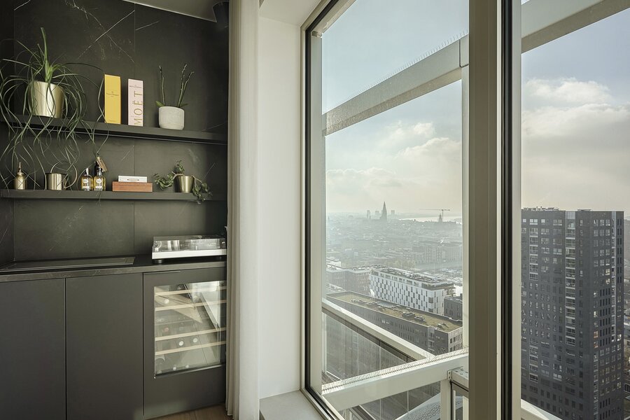 À une hauteur remarquable, au 23e étage de la Résidence Doktoren, ce penthouse d’exception offre une vue spectaculaire sur le quartier animé de l’Eilandje. Une perspective unique sur l’un des secteurs les plus prisés et dynamiques d’Anvers.