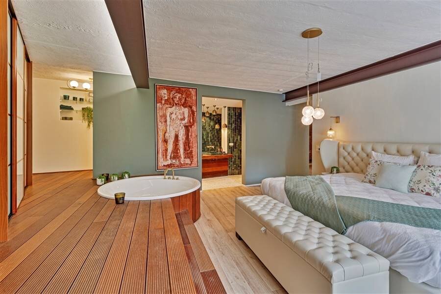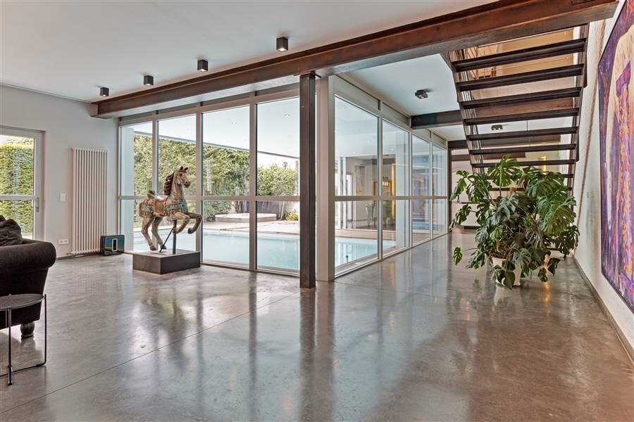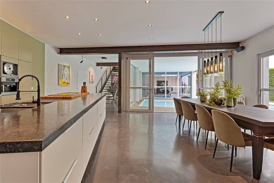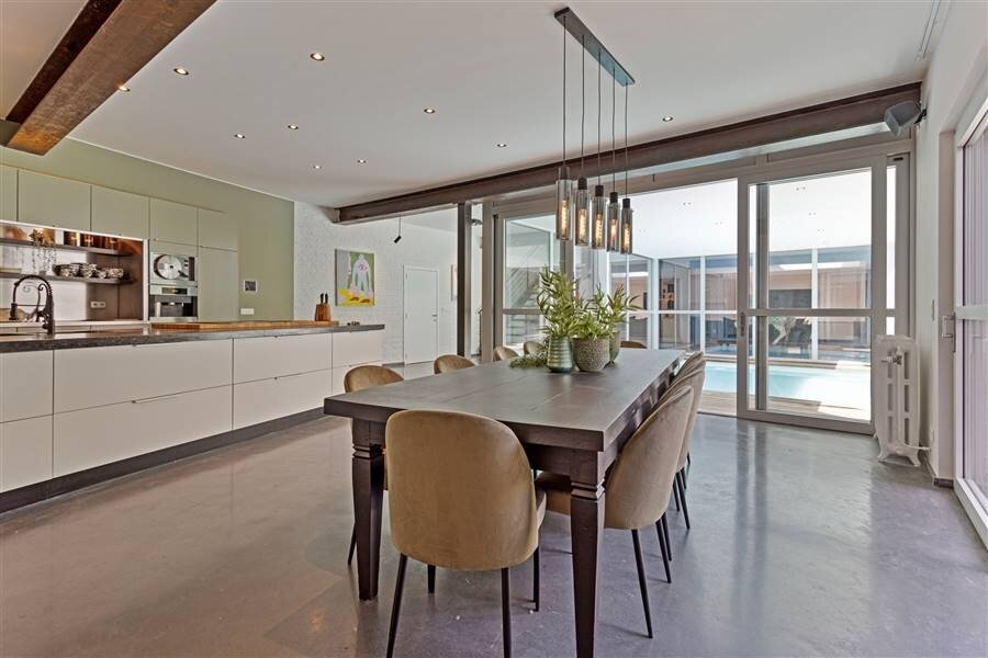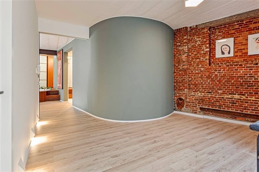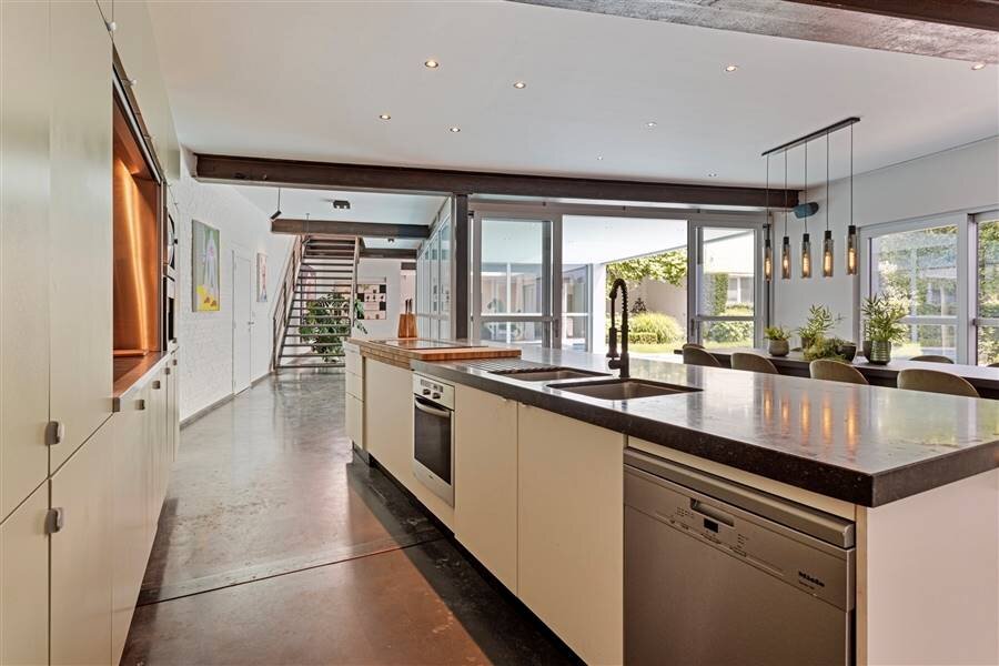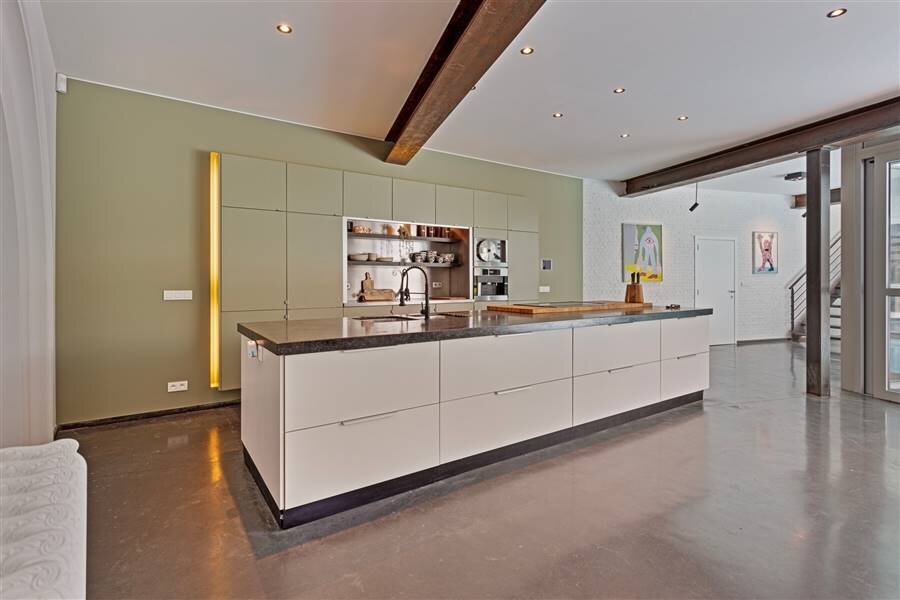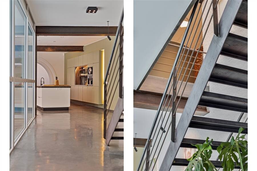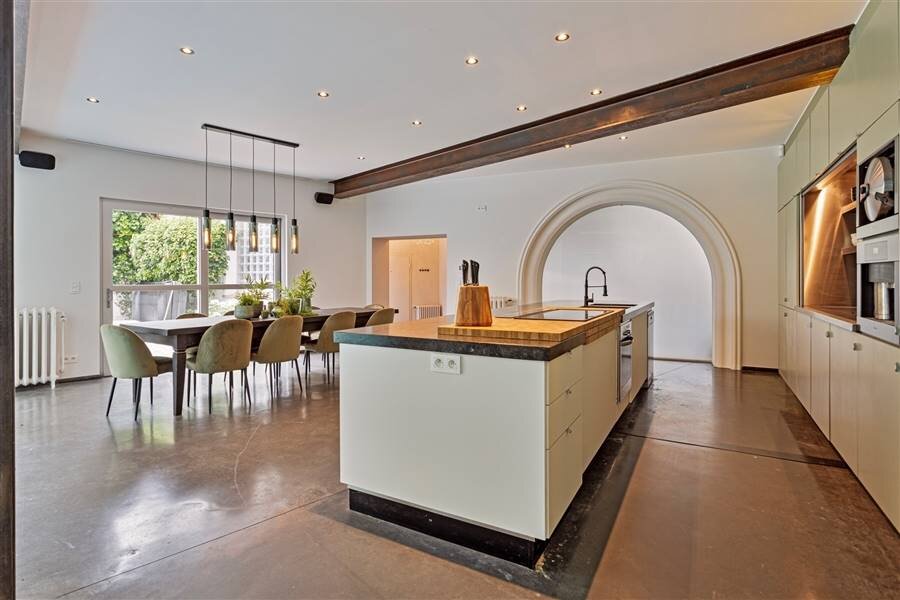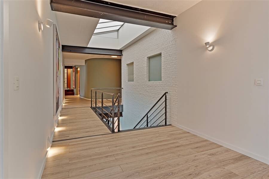 Bij binnenkomst valt direct de loftstijl inrichting op, met hoge plafonds en grote ramen die het interieur overspoelen met natuurlijk licht. De ruime woonkamer en eetkamer vormen het hart van de woning, ideaal voor zowel ontspanning als entertainment. De moderne keuken, volledig uitgerust met hoogwaardige apparatuur, is een droom voor iedere thuiskok. Het kookeiland en de strakke afwerking maken van deze keuken een echte eyecatcher.