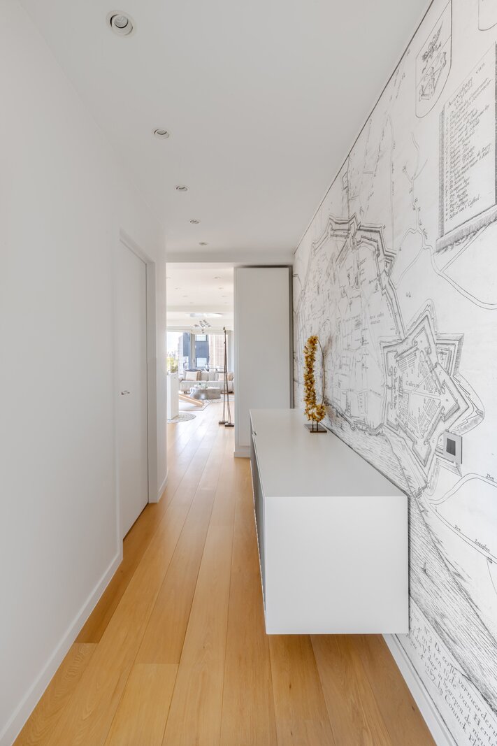 Dit hoekappartement van ca 140m² beschikt over een royale breedte aan de kaaien waardoor er een wijds zicht is naar het water. In deze kleinschalige residentie is er slechts 1 appartement per verdieping dus heel wat privacy. Hierdoor komt men ook met de lift direct het appartement binnen. Er zijn ook 2 terrassen, waarvan één met zicht op de Schelde.