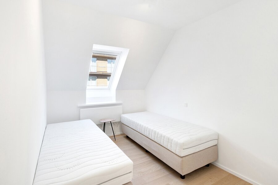 À seulement quelques pas de la digue à Duinbergen, cet exceptionnel duplex spacieux offre quatre chambres et une grande terrasse ensoleillée. Le séjour lumineux avec de larges baies vitrées donne accès à une terrasse accueillante avec une belle vue. Attenante, une salle à manger et une cuisine moderne entièrement équipée, complétée par une buanderie pratique. Dans le hall d’entrée, un vestiaire et des toilettes invités. À l’arrière se trouvent deux chambres complètes, chacune avec sa propre salle de bain ou salle de douche. À l’étage, deux autres chambres, également avec leur propre salle de douche. De nombreux rangements sont disponibles grâce aux armoires encastrées. Atouts supplémentaires: une cave privée et la possibilité d’acheter un garage à proximité.