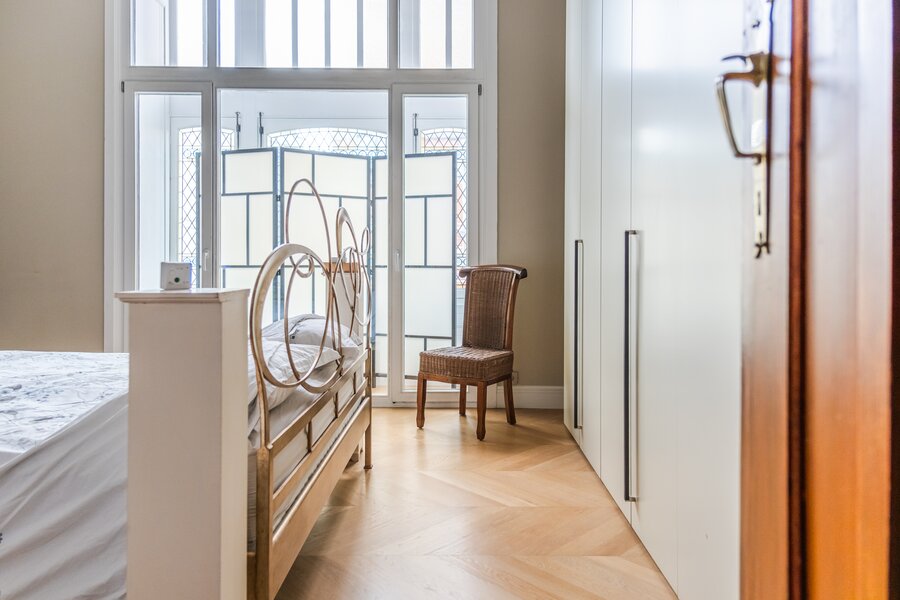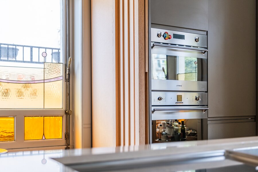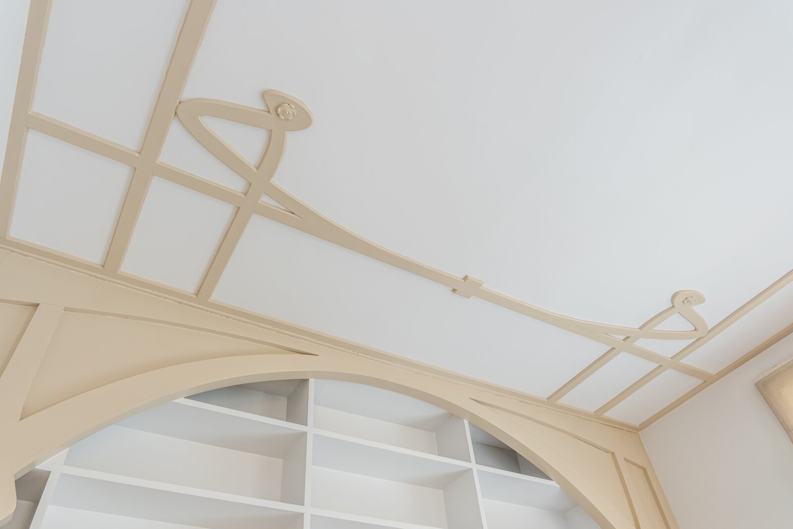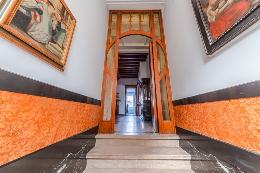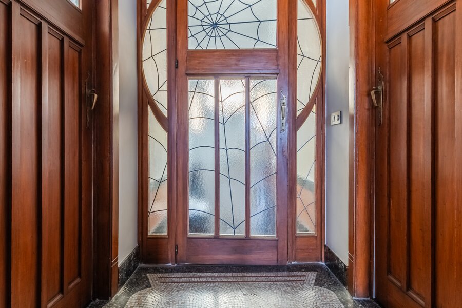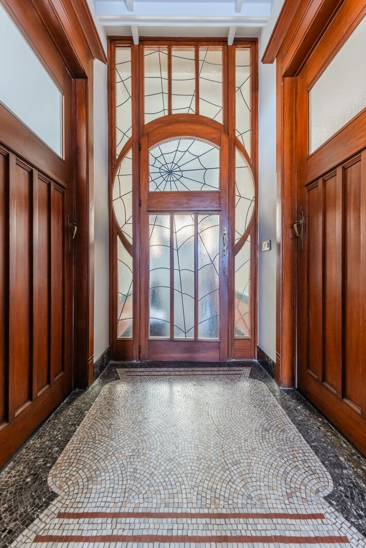 Les finitions d’origine témoignent d’un raffinement rare : parquets massifs, mosaïques, vitraux et fers forgés typiques de l’Art Nouveau.