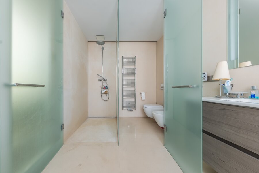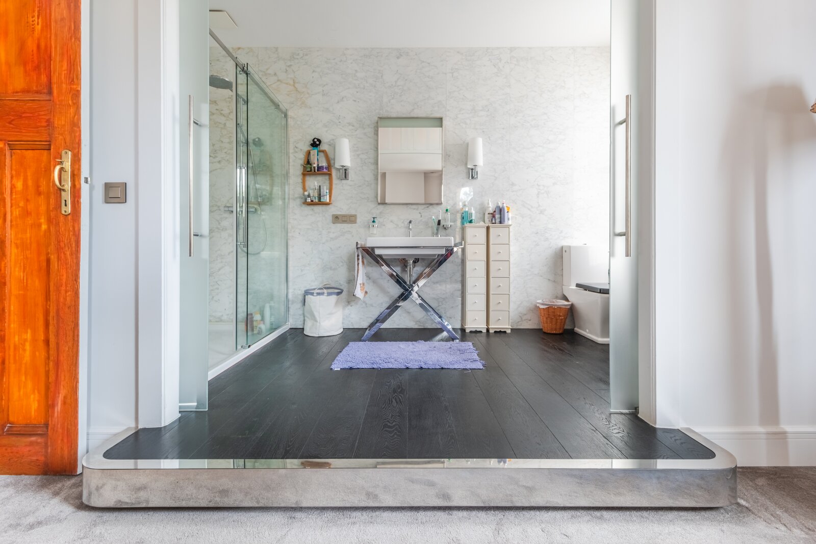 Le deuxième étage offre trois chambres, dont une avec salle de douche privative, ainsi qu’une grande salle de bains, le tout baigné par un puits de lumière qui illumine la distribution. Au dernier niveau, un studio aménagé sous les toits propose un coin salon, une kitchenette, une chambre et une salle d’eau : parfait pour un invité ou un usage indépendant.