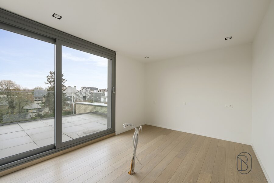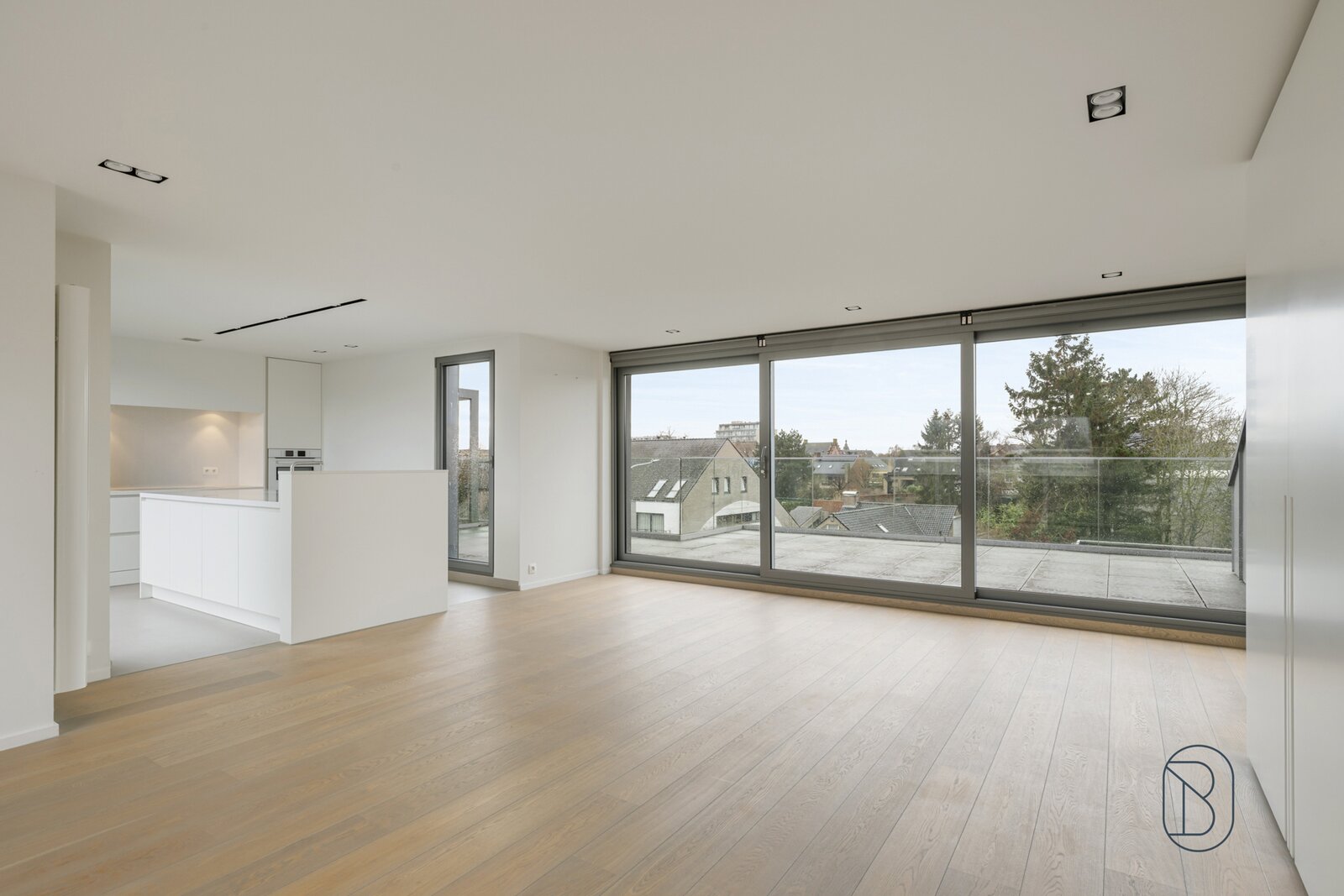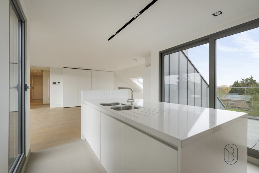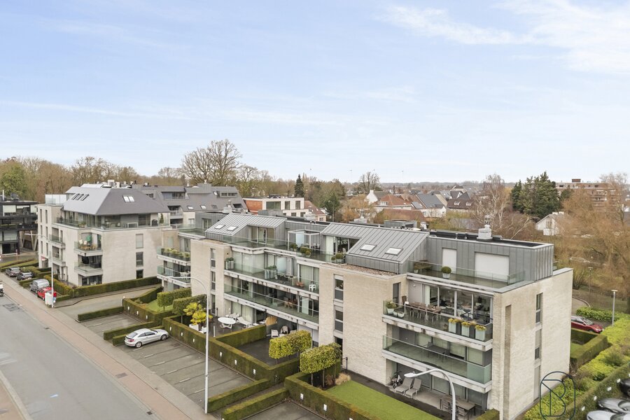 Mooi afgewerkte ruime penthouse met 4 terrassen en zicht op park Baron Casier.