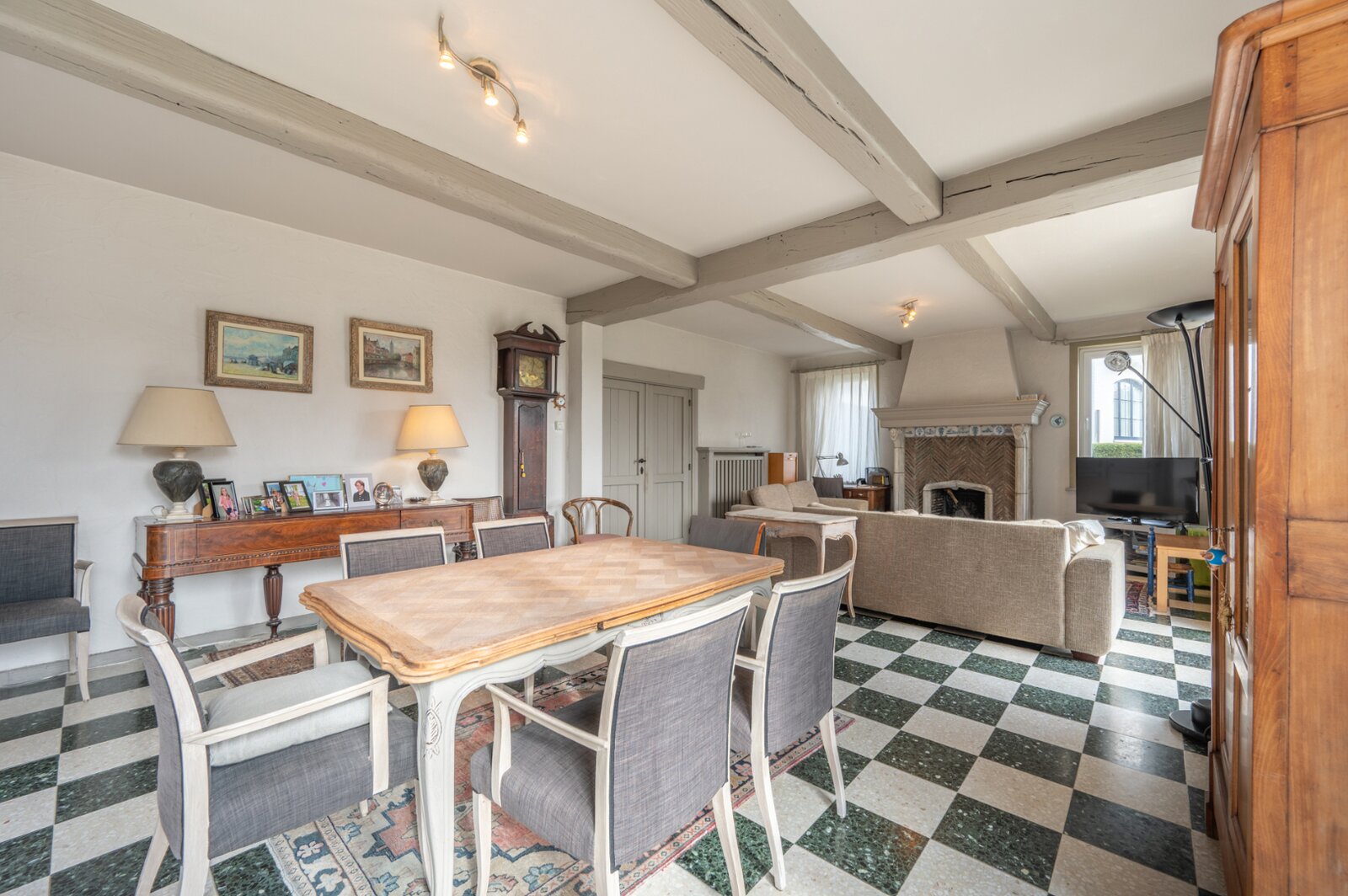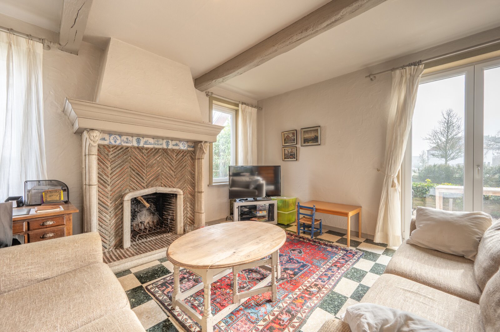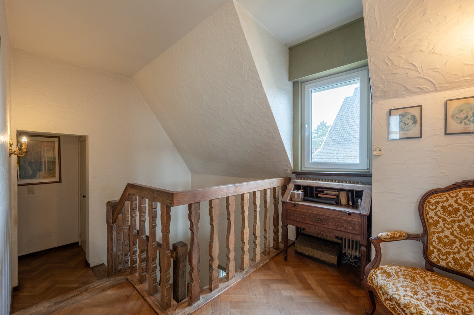 En entrant, vous arrivez dans un hall d'entrée spacieux qui mène au salon lumineux. Ce salon confortable avec cheminée constitue le cœur de la maison et offre de nombreuses possibilités pour créer un cadre de vie chaleureux et accueillant. La cuisine, qui dispose de raccordements pratiques et d'un espace de rangement supplémentaire, est adjacente. La maison est également facilement accessible par le garage, qui offre un espace de rangement supplémentaire pour plus de confort pratique.