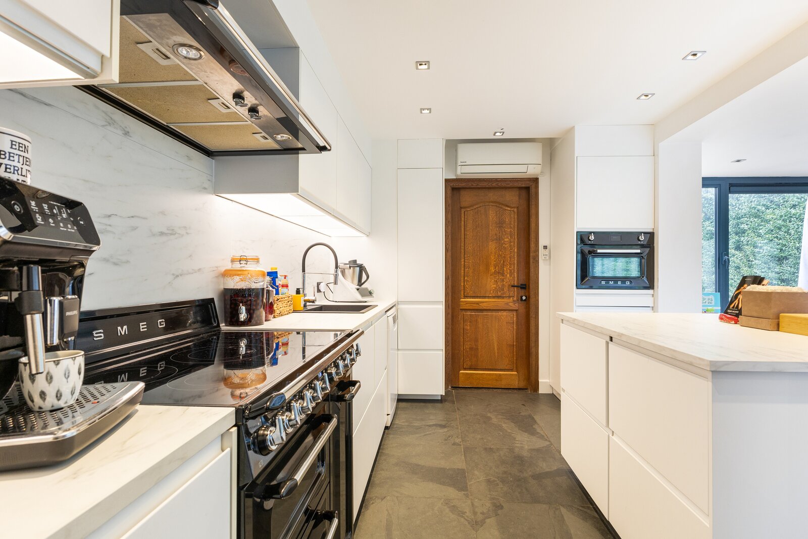 Grâce à son vaste espace de stationnement et à sa situation visible le long de la Natiënlaan, ce bien est également intéressant pour combiner habitation et activité indépendante ou cabinet professionnel.