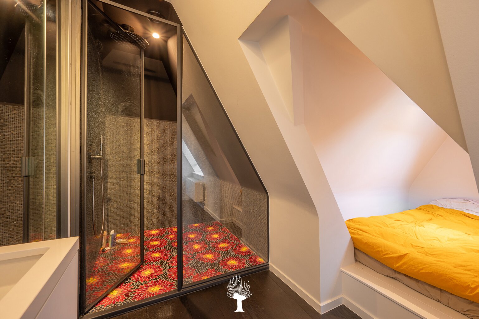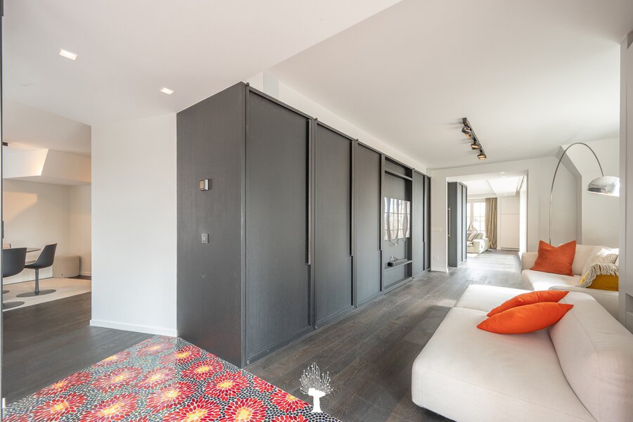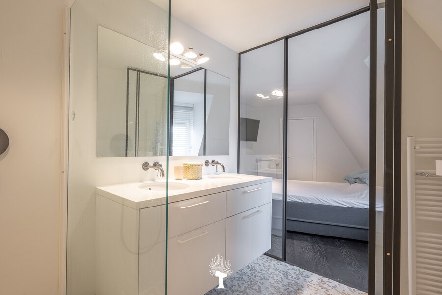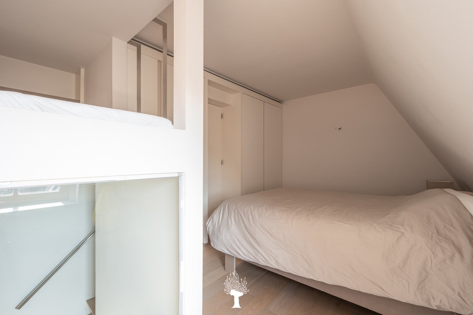 À l'étage : 5 chambres avec salle de bains privative et placards encastrés partout. WC séparé. Rangement supplémentaire. Cave privée et local à vélos commun. Possibilité d'acquérir une place de parking dans le garage de la résidence au prix de 100.000 €. Finitions très soignées, solides et luxueuses. Matériaux de première qualité ! Offre exceptionnelle : vue sur mer, terrasses et soleil ! Unique !