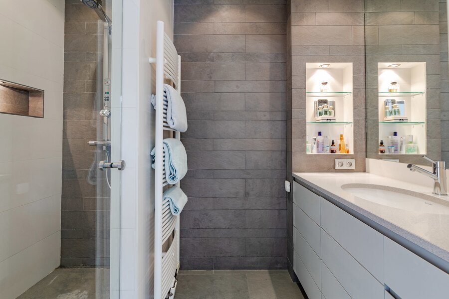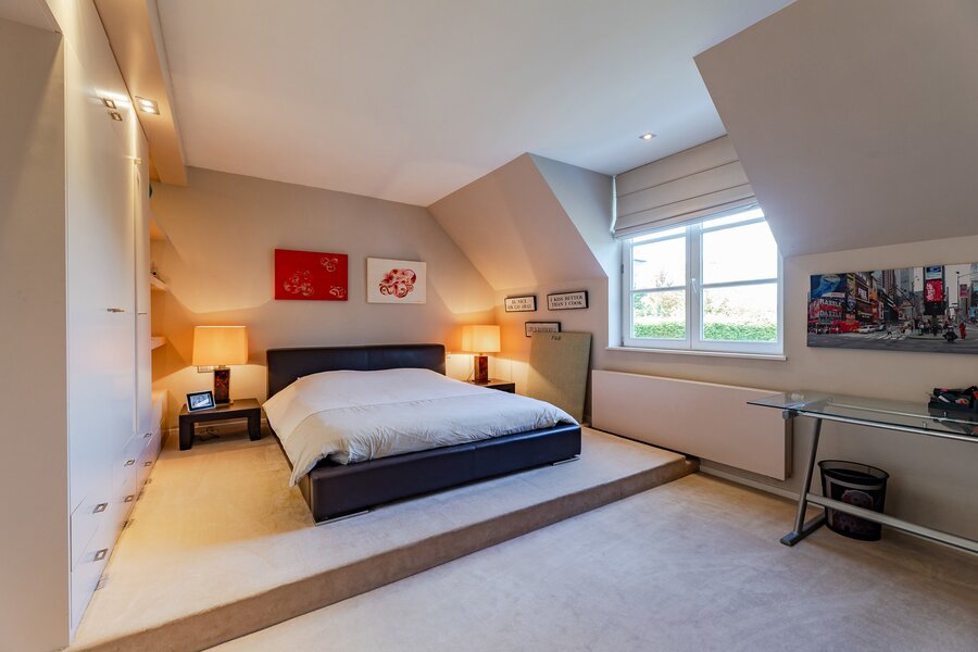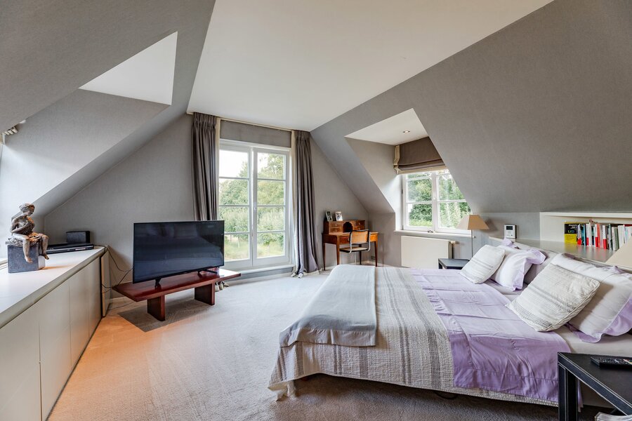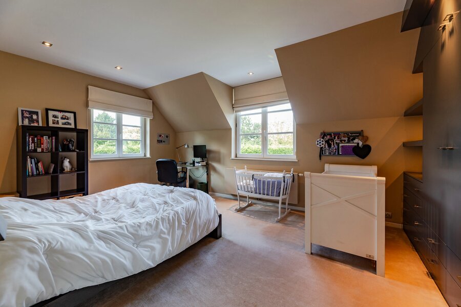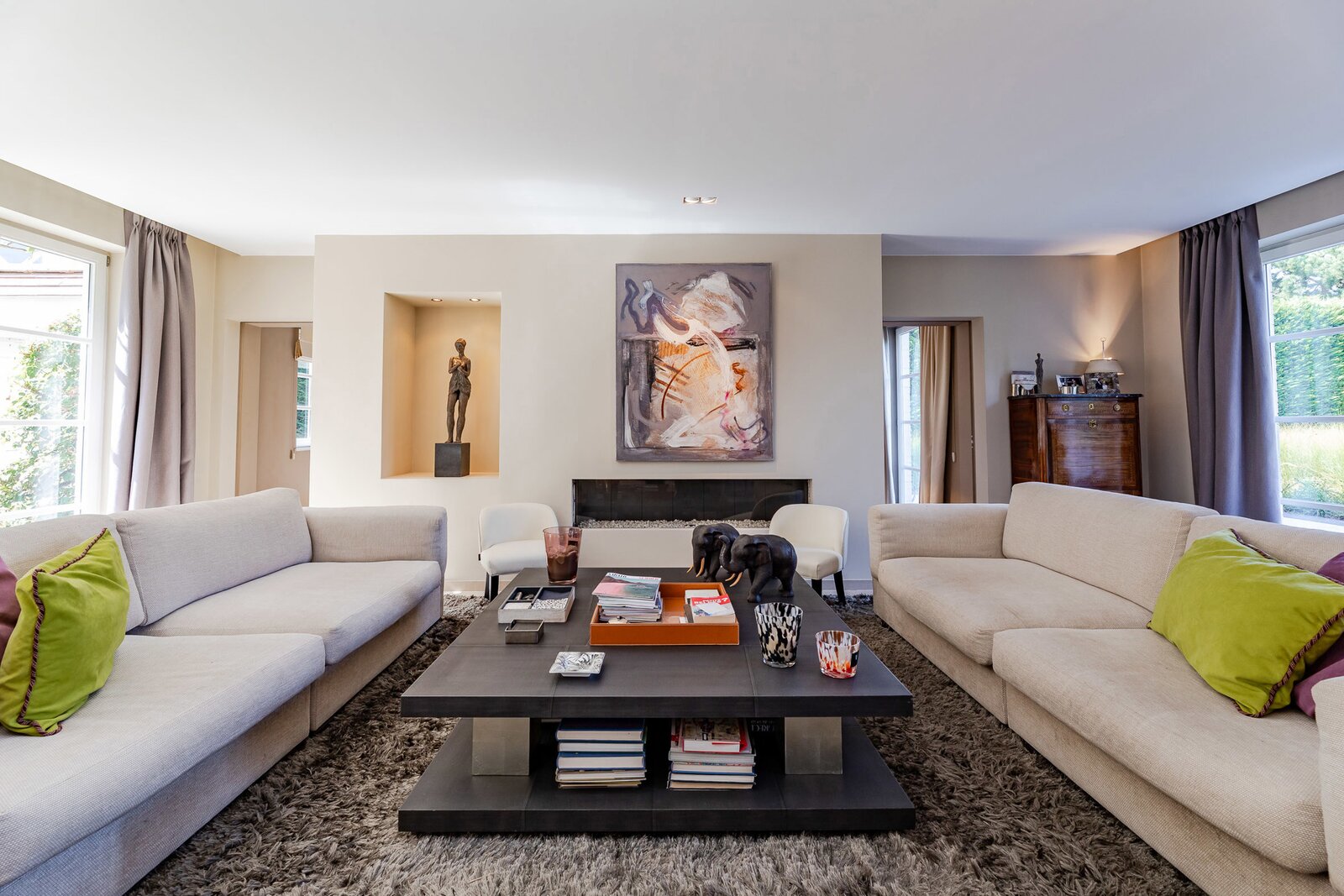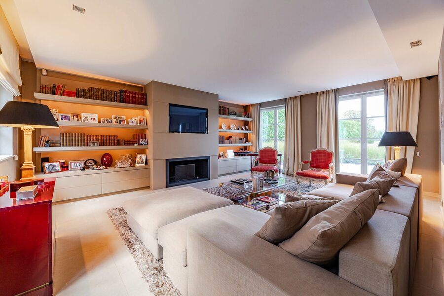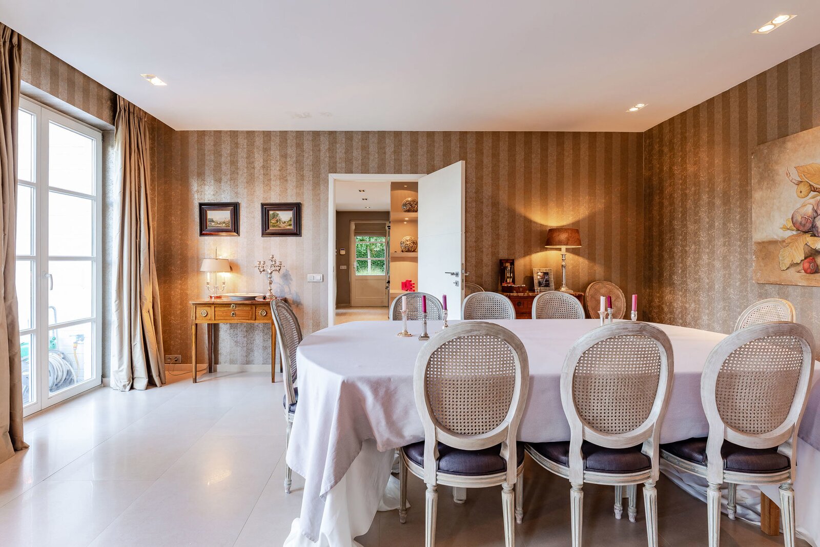 Développant une surface habitable de ± 500 m², elle offre de belles et lumineuses réceptions, une vaste cuisine hyper équipée, ainsi que cinq chambres et cinq salles de bains. Deux garages pour deux voitures complètent l’ensemble. PEB : B