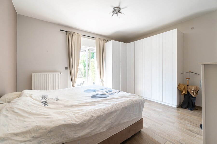 Le rez-de-chaussée, traité dans un esprit loft, se distingue par ses volumes ouverts et lumineux grâce à de larges baies vitrées. La suite parentale y est intégrée : chambre avec vue sur le jardin, grand dressing et salle de douche attenante. Les espaces de vie s’articulent autour d’un séjour agréable et d’une cuisine ouverte au design épuré.