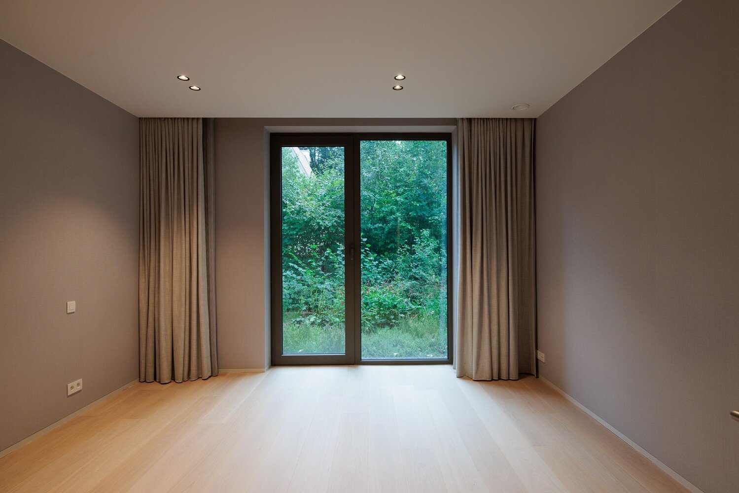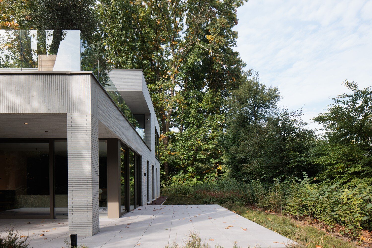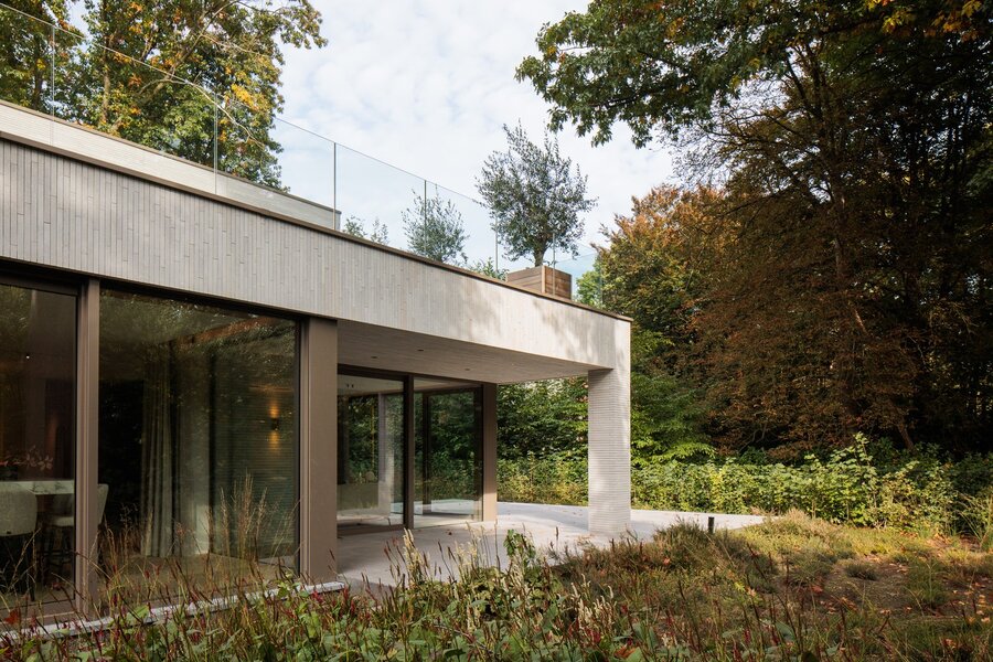 Le séjour orienté plein sud avec cuisine ouverte s’ouvre sur une immense terrasse partiellement couverte de 60 m². Un espace idéal pour profiter du calme, de la verdure et de l’intimité. La cuisine est entièrement équipée avec des appareils Miele, Bora et un robinet Quooker, et elle donne accès à une arrière-cuisine/buanderie pratique.