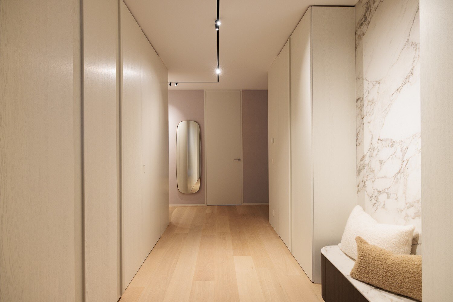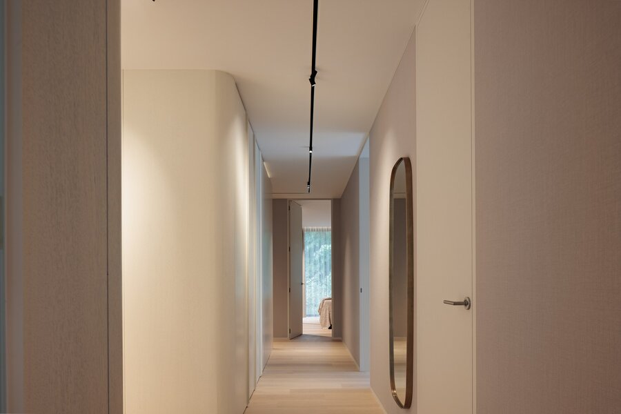 Ce superbe appartement-villa de 237 m² se trouve également au rez-de-chaussée de la Résidence Delicia. Par l’entrée privative, habillée sur mesure en placage chêne, vous découvrez immédiatement le niveau de finition exceptionnel.