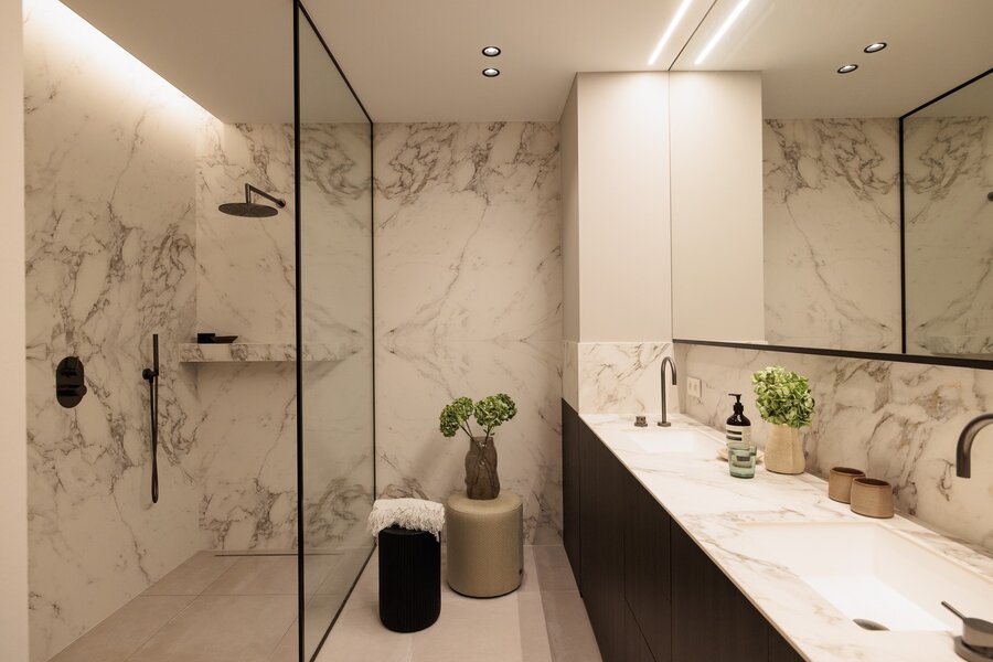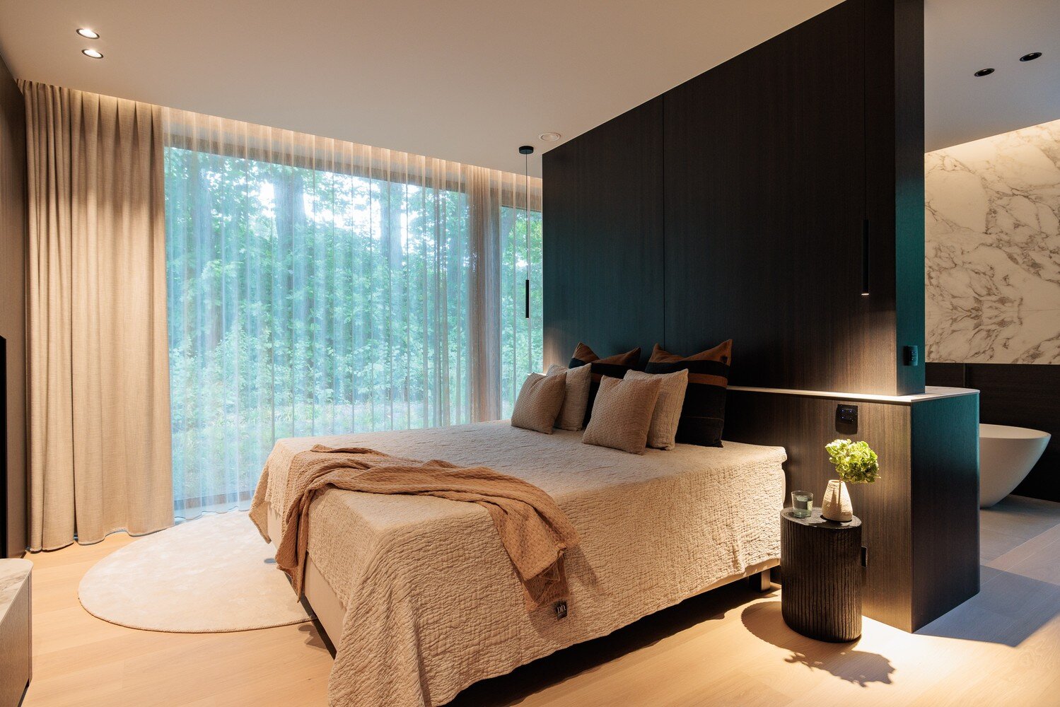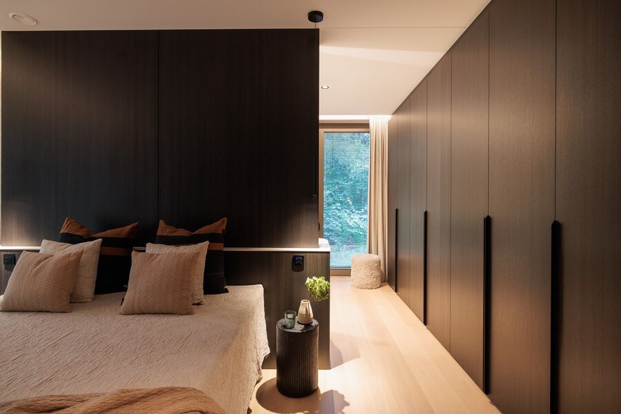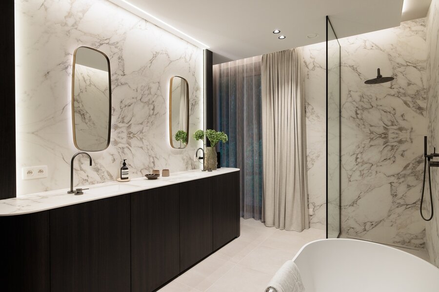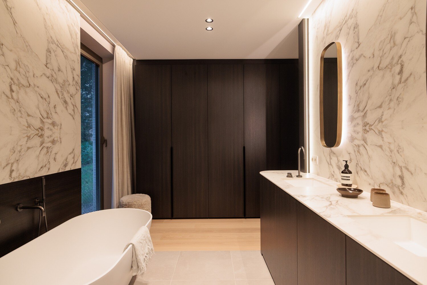 La zone nuit, tout aussi raffinée, comprend une suite parentale avec salle de bains attenante (double vasque, baignoire et douche à l’italienne) ainsi que deux autres chambres. Ces dernières se partagent une deuxième salle de bains avec double vasque et douche à l’italienne. La troisième chambre peut, selon vos besoins, être aménagée en bureau ou salle de sport.