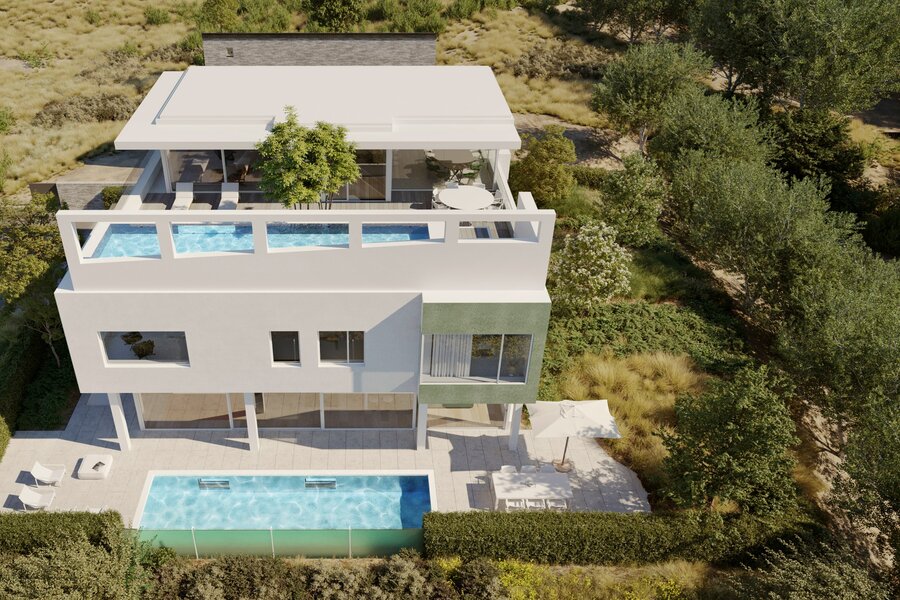 Samen met Villa H vormt Villa O een harmonieus architecturaal duo, elk met zijn eigen karakter en volledige privacy.