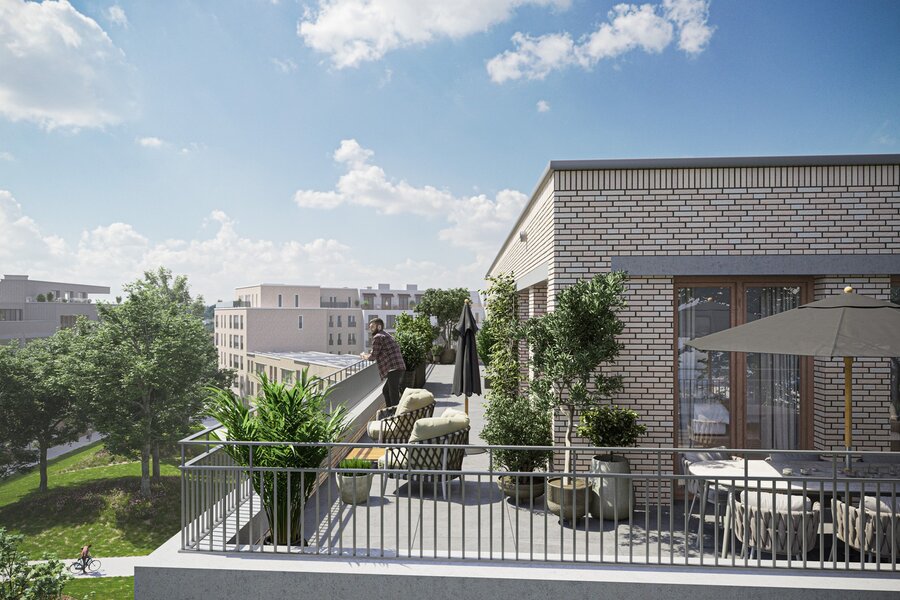 Les espaces extérieurs, stratégiquement positionnés sur les façades est et sud, offrent non seulement des vues à couper le souffle mais aussi une connexion profonde avec l'environnement. Le bâtiment, construit en briques et avec des accents distinctifs en béton, n'exprime pas seulement la classe mais aussi un mode de vie élégant.
