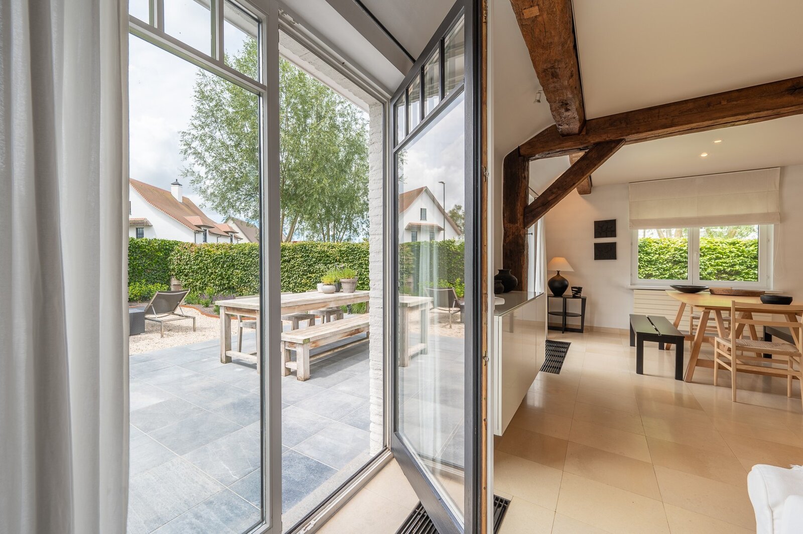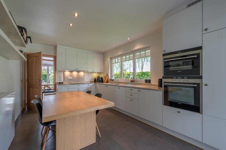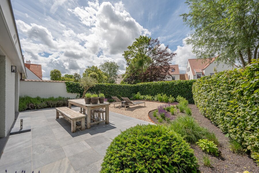 Charmante villa jumelée avec jardin ensoleillé et terrasses, située à Knokke. Composition: Hall d'entrée avec vestiaire et toilettes invités. Salon et salle à manger lumineux avec cheminée au gaz donnant sur la terrasse ensoleillée et le jardin. Cuisine moderne équipée avec coin petit-déjeuner. 1ère chambre à coucher avec accès à la terrasse et au jardin. Salle de bains (lavabo - baignoire et douche). Spacieux débarras avec coin buanderie. Local technique. Au premier étage : chambre principale avec placards et dressing attenant. 3ème chambre spacieuse avec placards et dressing. 4ème chambre ou bureau avec accès à la terrasse avec débarras. Salle de bains (douche - toilettes - double vasque). Grenier. Plusieurs places de parking à l'extérieur. Contactez Knokke Real Estate pour organiser une visite.
